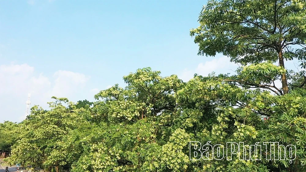 Tán hoa sữa trĩu bông trong nắng, làm mềm không gian giữa lòng phố
