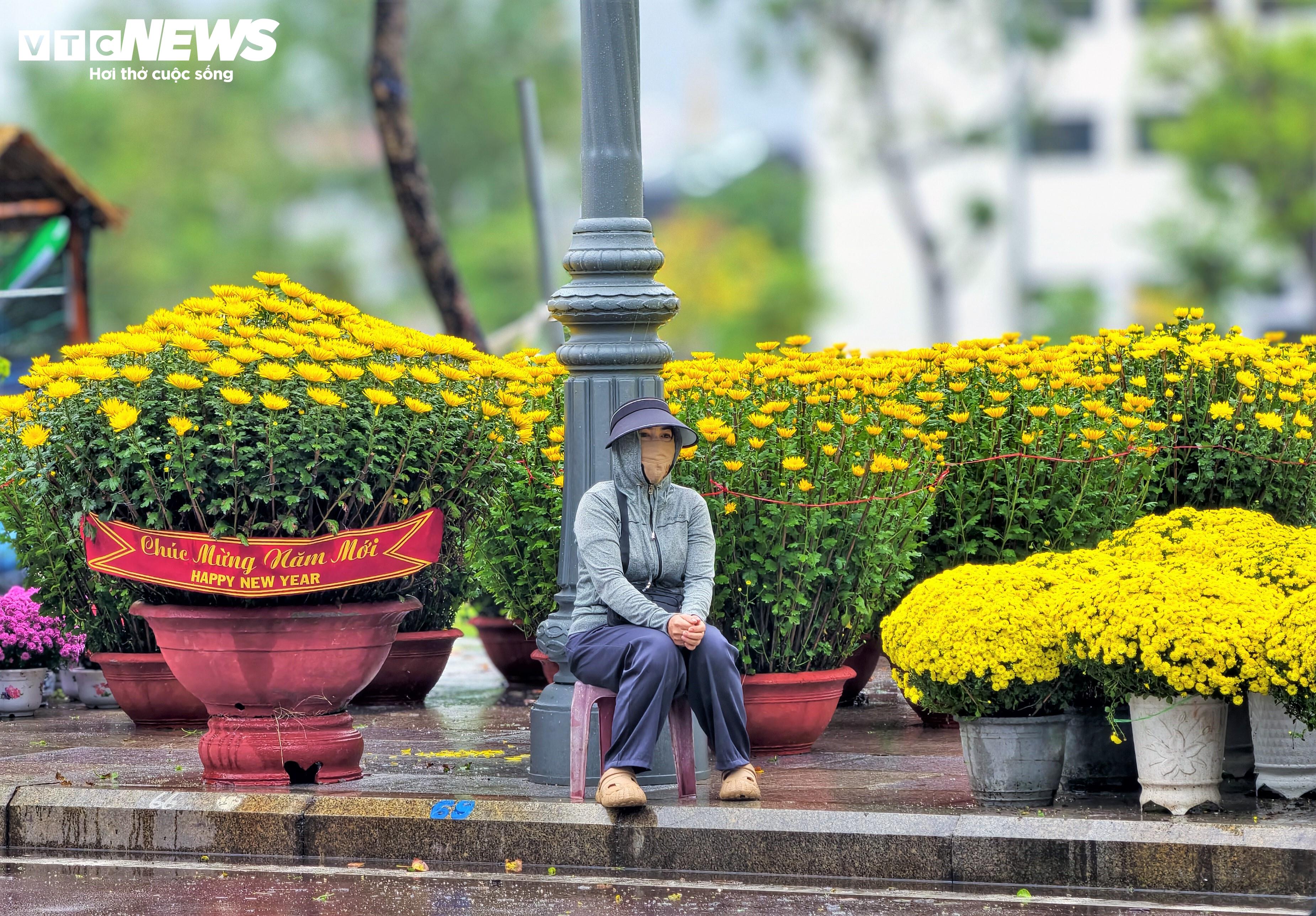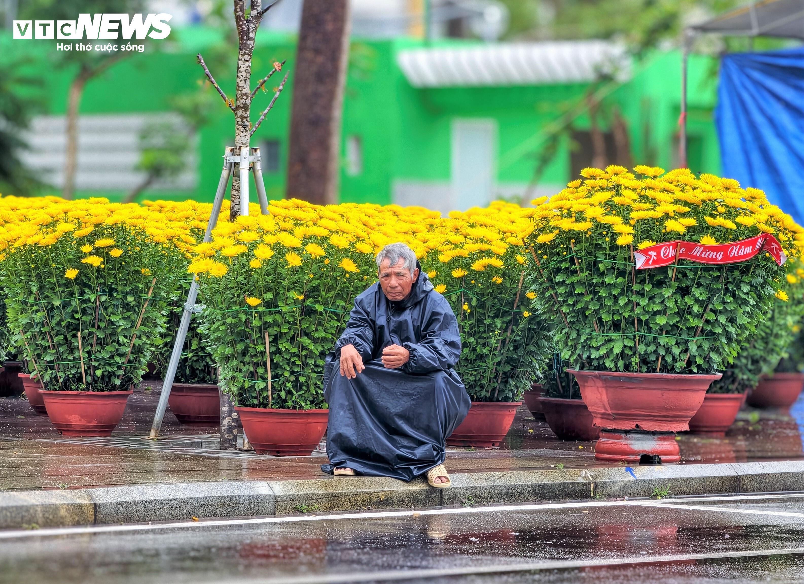 Cơn mưa kéo dài mấy ngày nay, càng khiến tiểu thương bán hoa Tết lo lắng, đứng ngồi không yên.