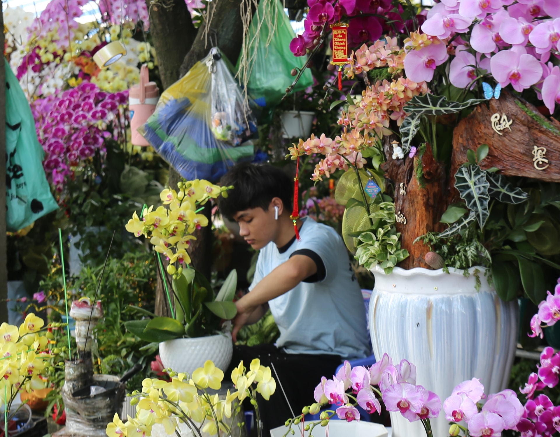 Lan hồ điệp hiện khoảng 250.000 đồng/cây, lan mokara 210.000 - 260.000 đồng/cây. Những chậu lan lớn có giá từ vài triệu đến hàng trăm triệu đồng.