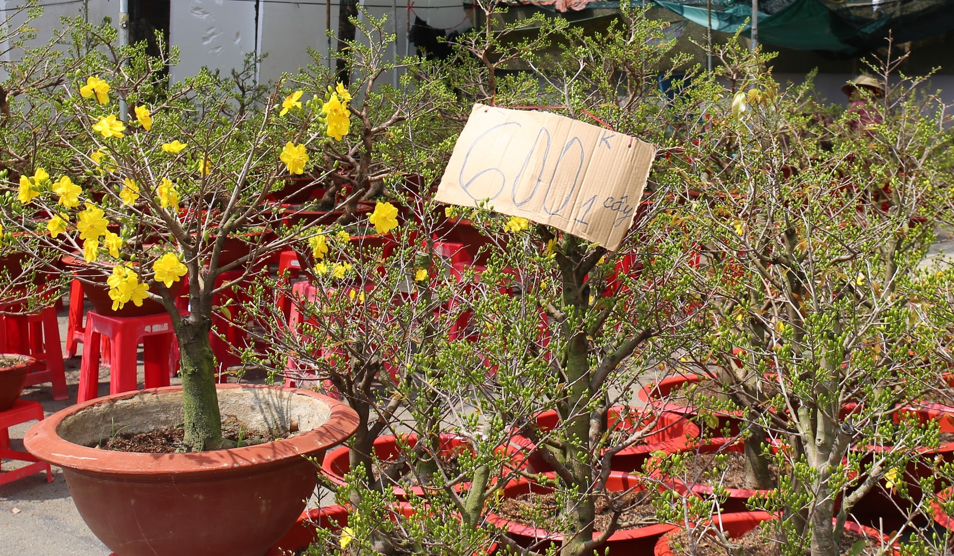 Mai vàng dao động từ vài trăm nghìn đến vài chục triệu đồng, tùy từng loại được bày bán tại Hội chợ hoa xuân của tỉnh Đồng Nai.