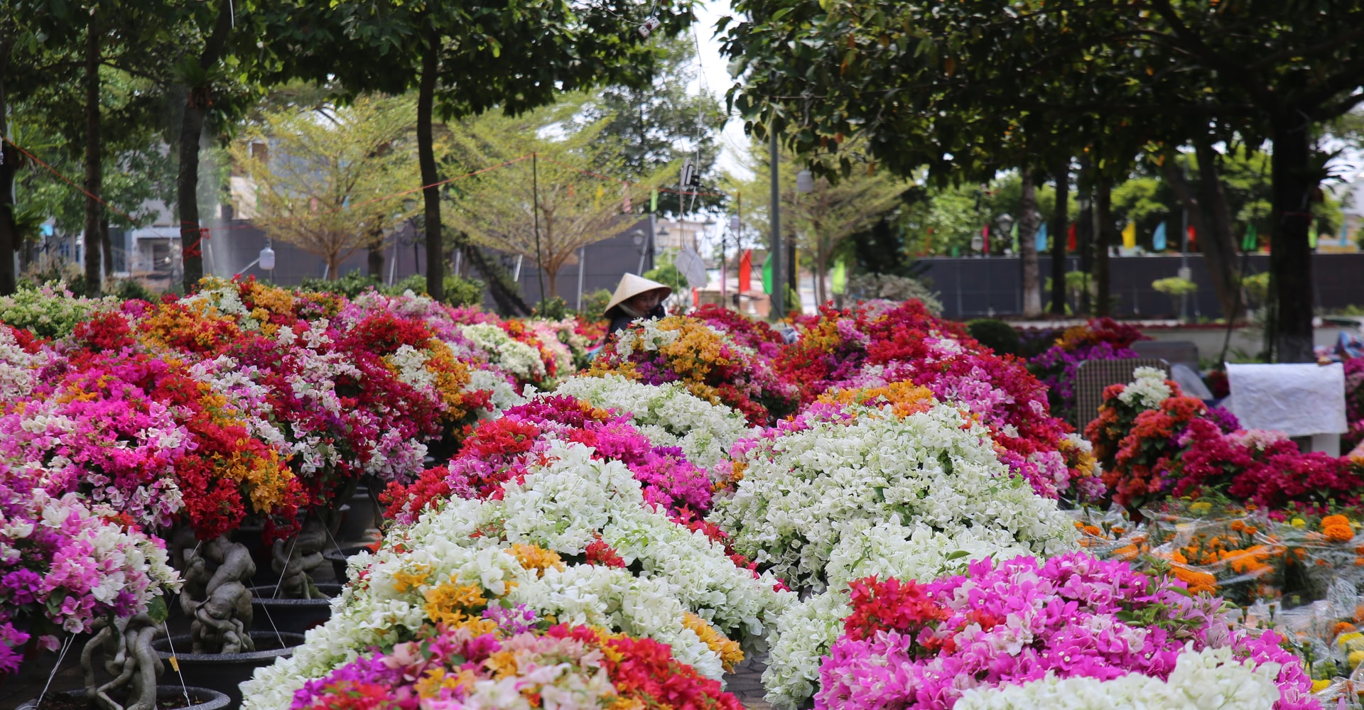 Hoa giấy có nhiều loại với màu sắc nổi bật được các thương lái ở miền Tây đưa lên bán, tạo không gian đa màu sắc và thơ mộng.
