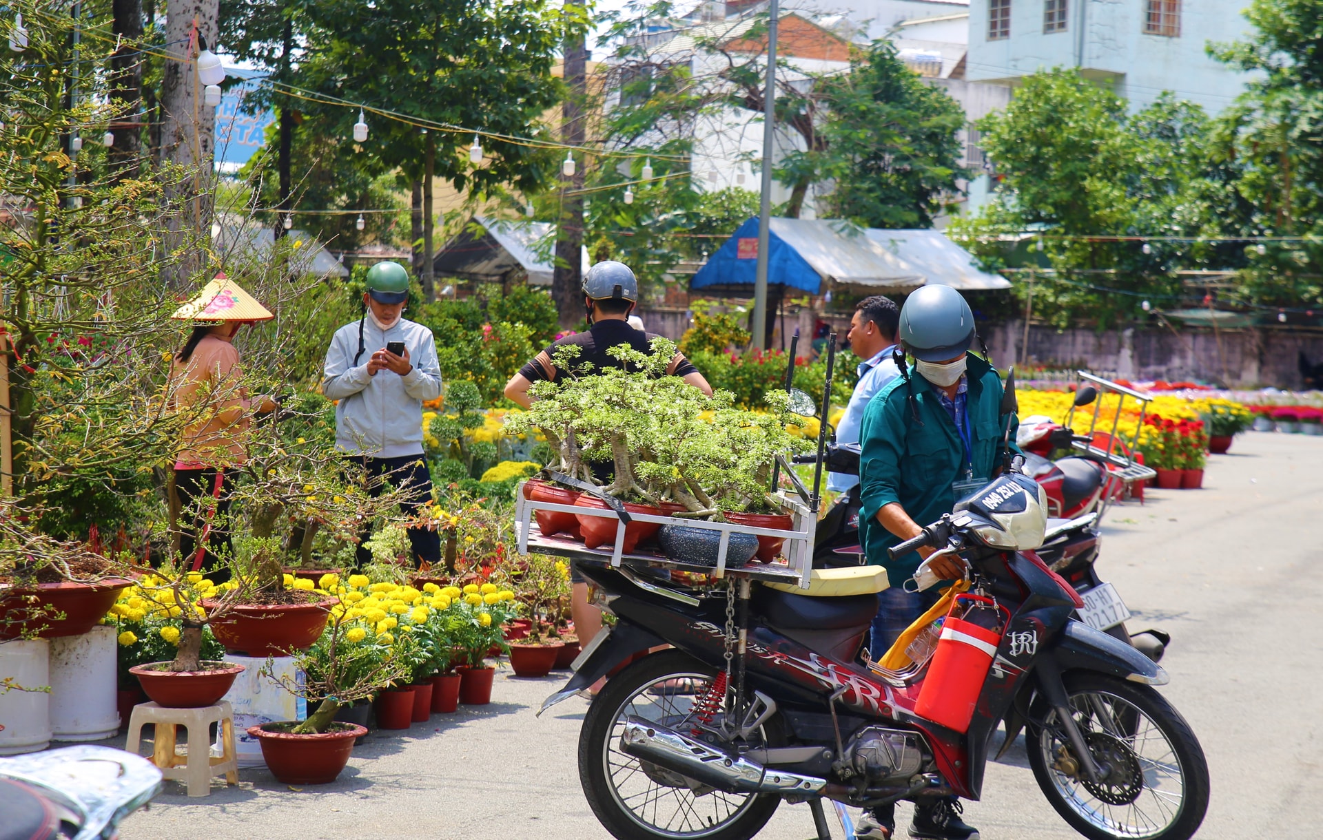 Hội chợ hoa với muôn loài hoa cúc, quất, đồng tiền, tạo nên không gian rộn ràng, mang lại may mắn, hy vọng cho năm mới.