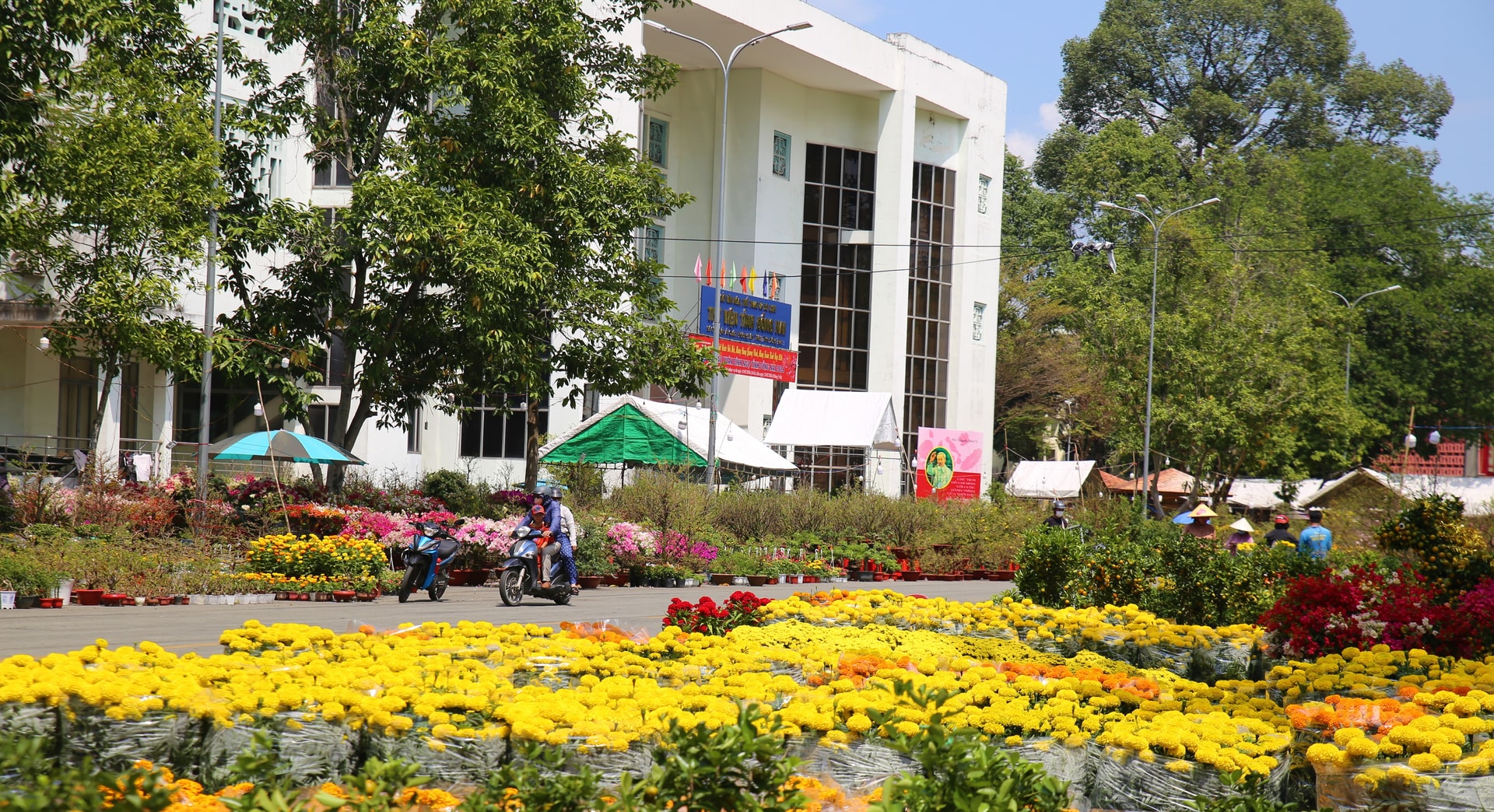 Hội chợ hoa xuân tại Trung tâm Sự kiện và Đối ngoại tỉnh Đồng Nai có hàng trăm gian hàng hoa, cây cảnh thu hút người dân đến tham quan, chụp hình, lựa chọn hoa, cây cảnh trang trí.