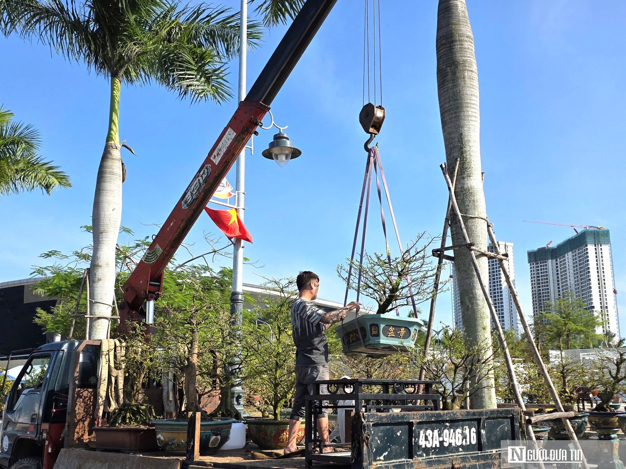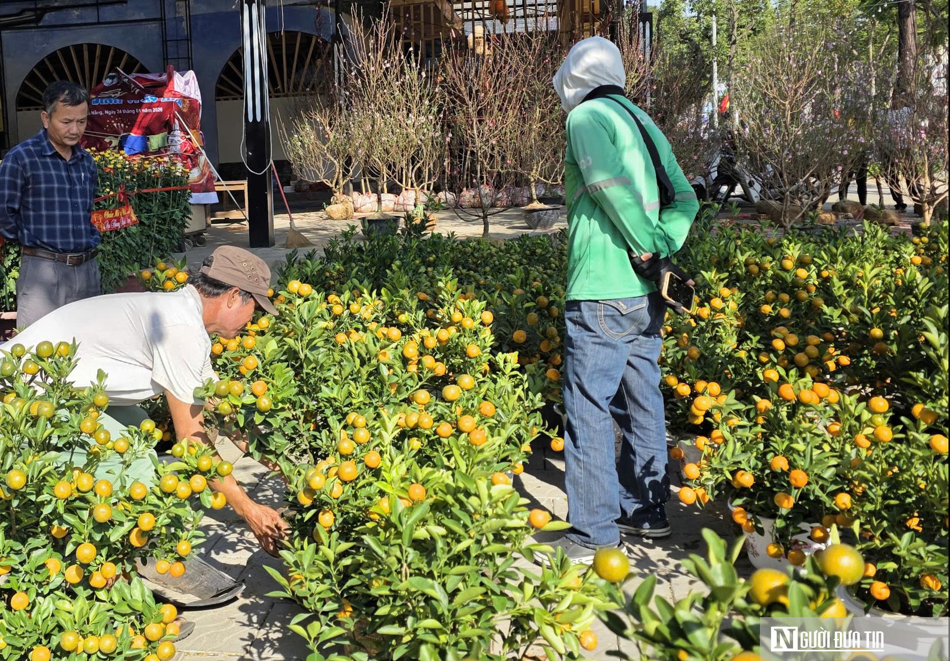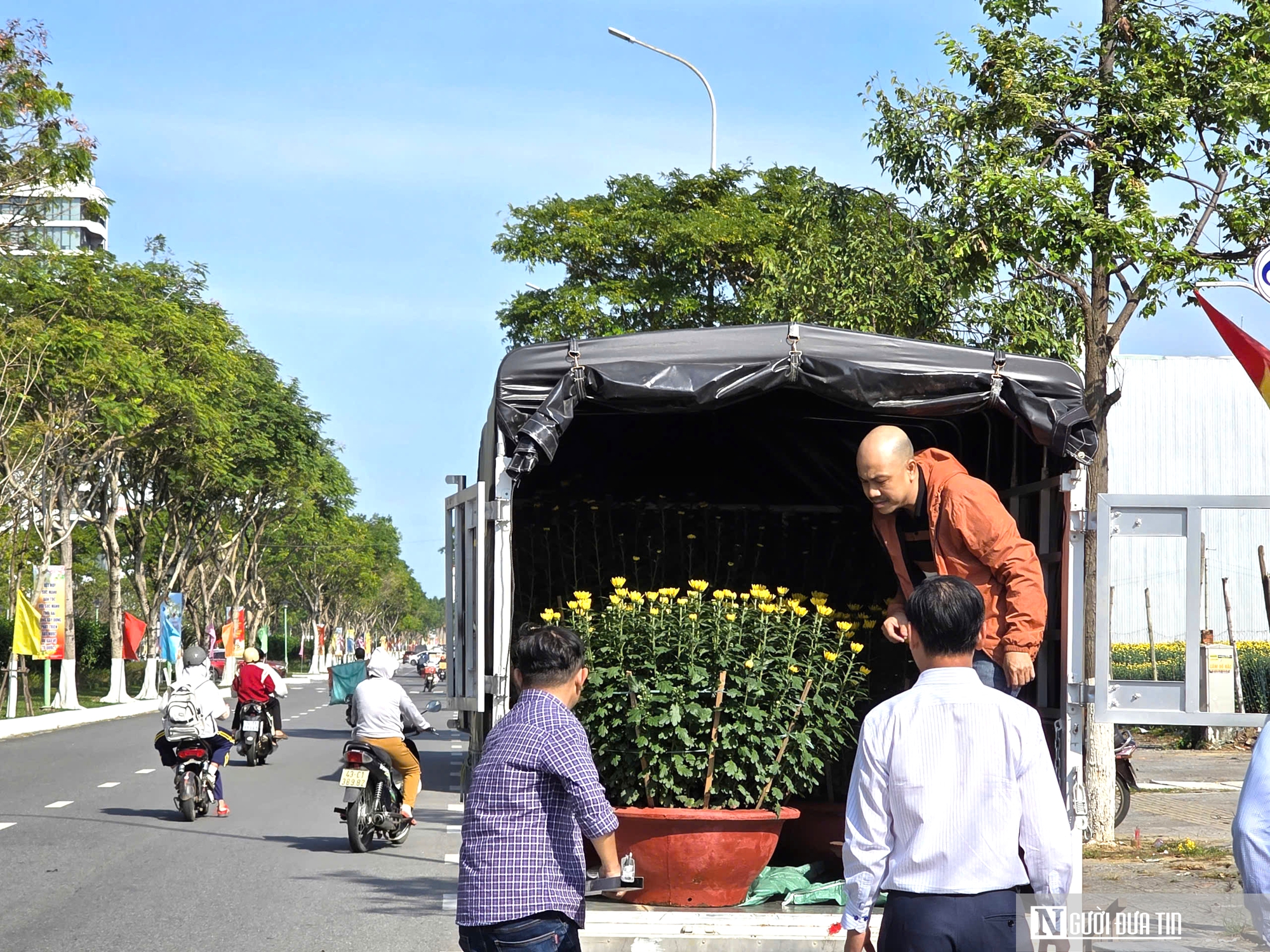 Trong khi đó, tại vườn cây cảnh Đại Phú trên đường Nguyễn Xuân Lâm, phường Hòa Xuân, những ngày này nhộn nhịp từ tờ mờ sáng. Anh Thái Viết Kha (37 tuổi), chủ vườn, cùng nhân viên liên tục chăm sóc cây, sắp xếp hàng hóa, đóng xe giao cho thương lái.