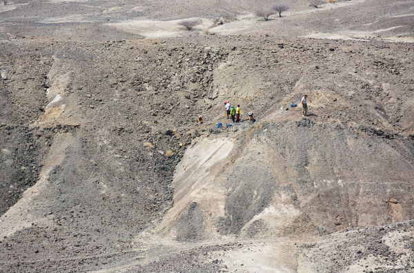 Nhóm các nhà nghiên cứu sinh vật học cổ đang tìm kiếm hóa thạch tại lưu vực Lee Adoyta thuộc Ledi-Geraru (Ethiopia), nơi các chi Homo và Australopithecus đã được phát hiện. Ảnh: Kaye Reed/ASU.