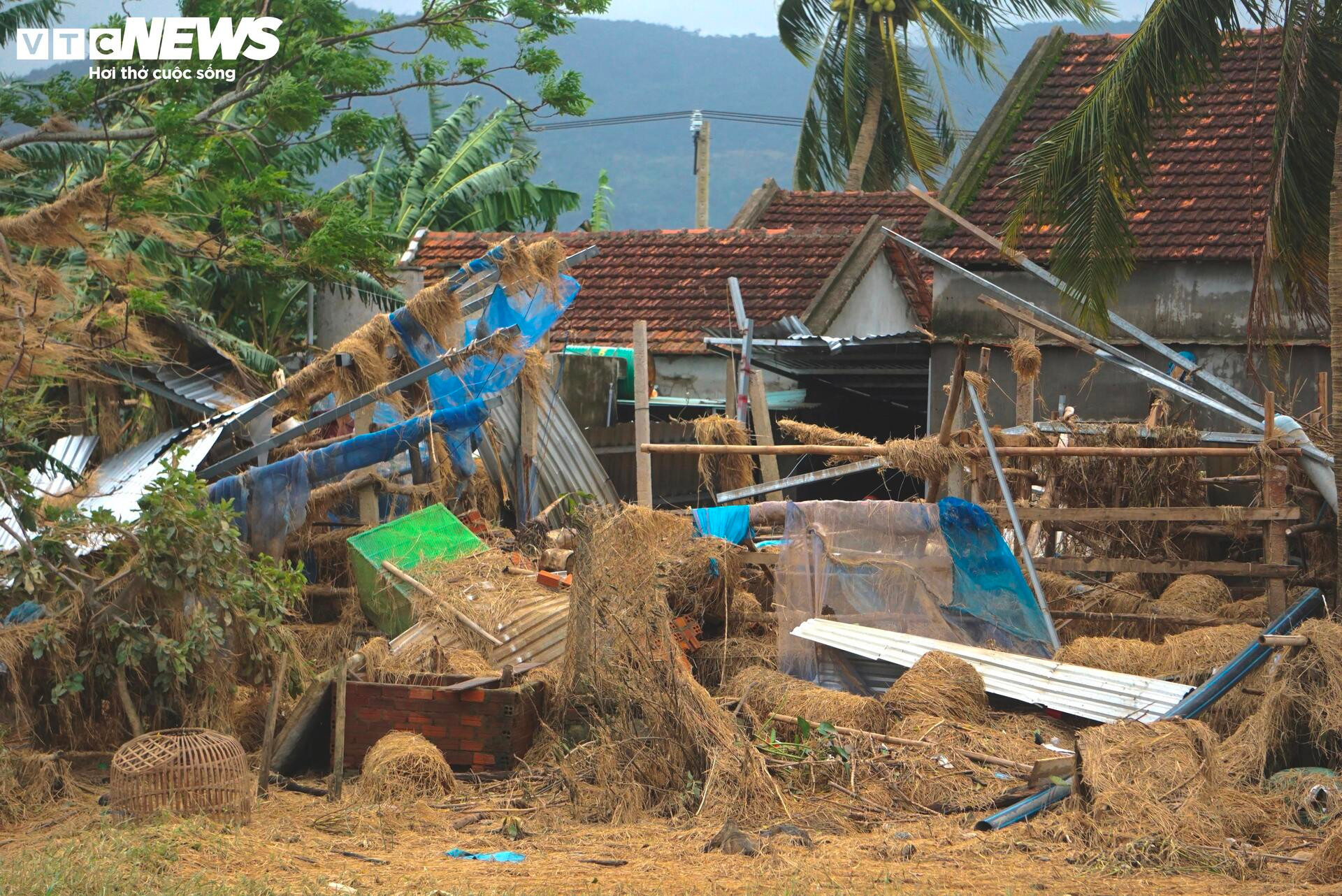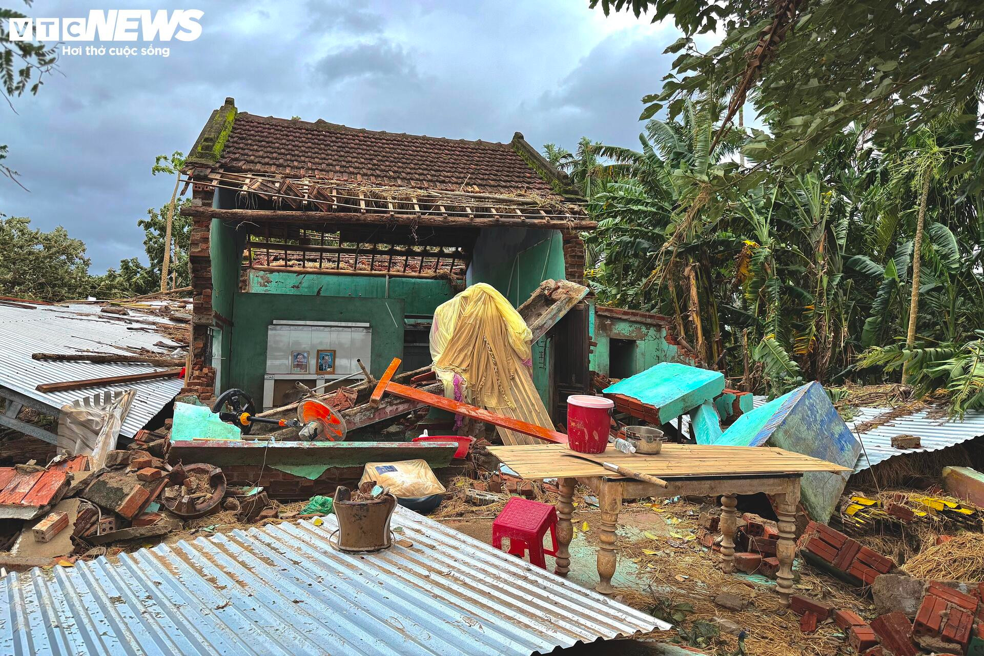 Tại thôn Phú Hữu, hàng chục ngôi nhà đổ sập, bị lũ cuốn trôi. Nước rút nhưng mái ngói, tường nhà vẫn chưa kịp khô ráo.