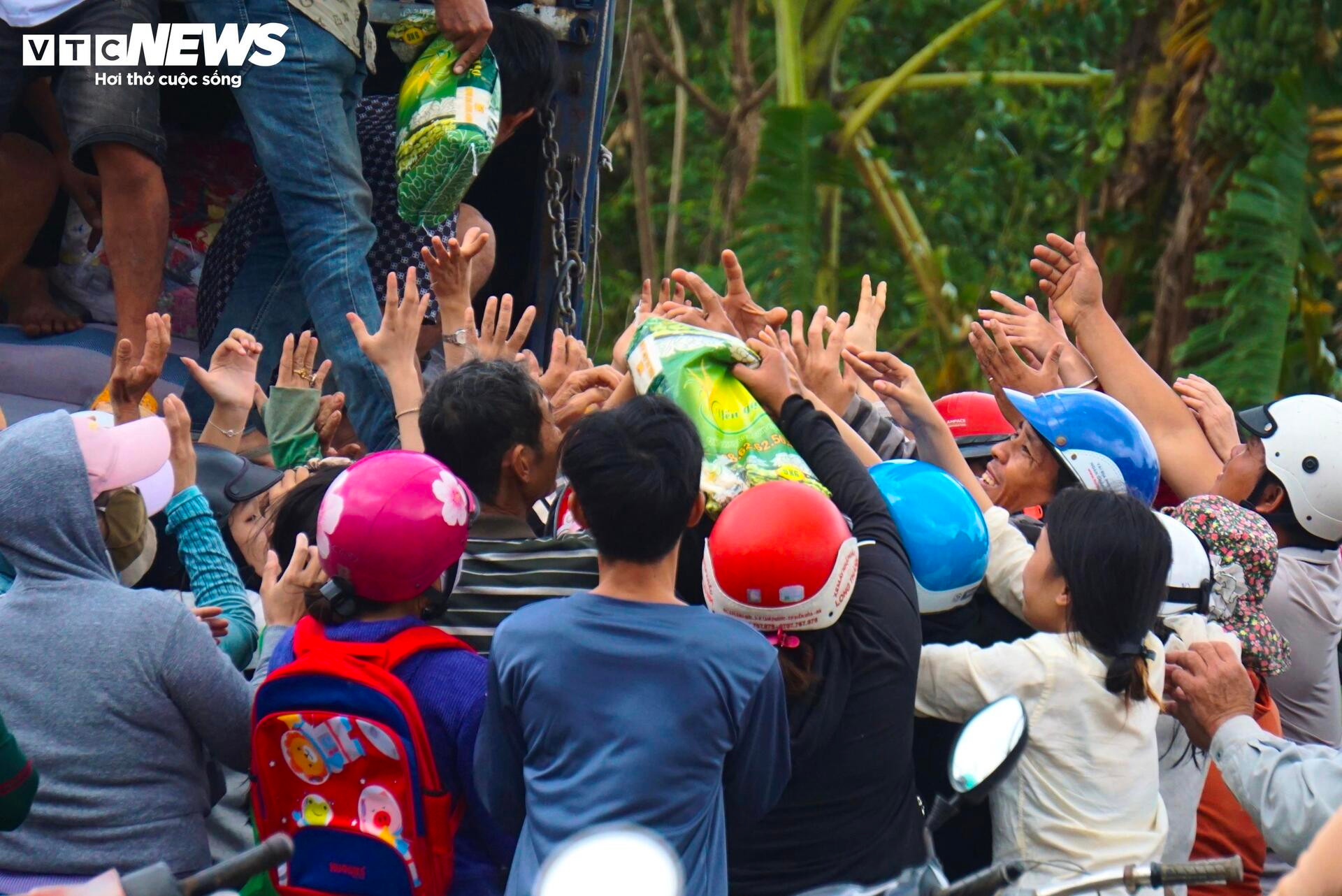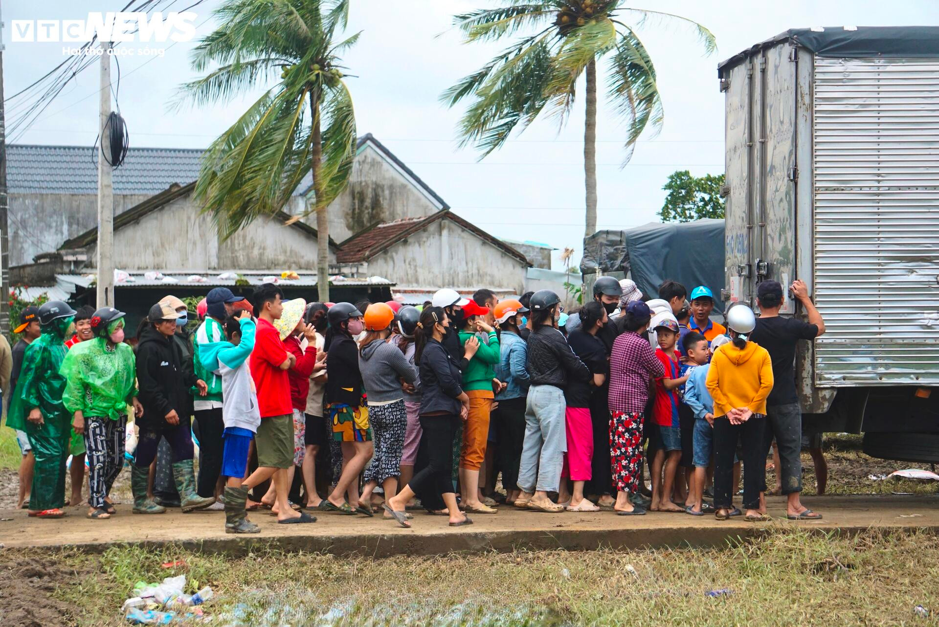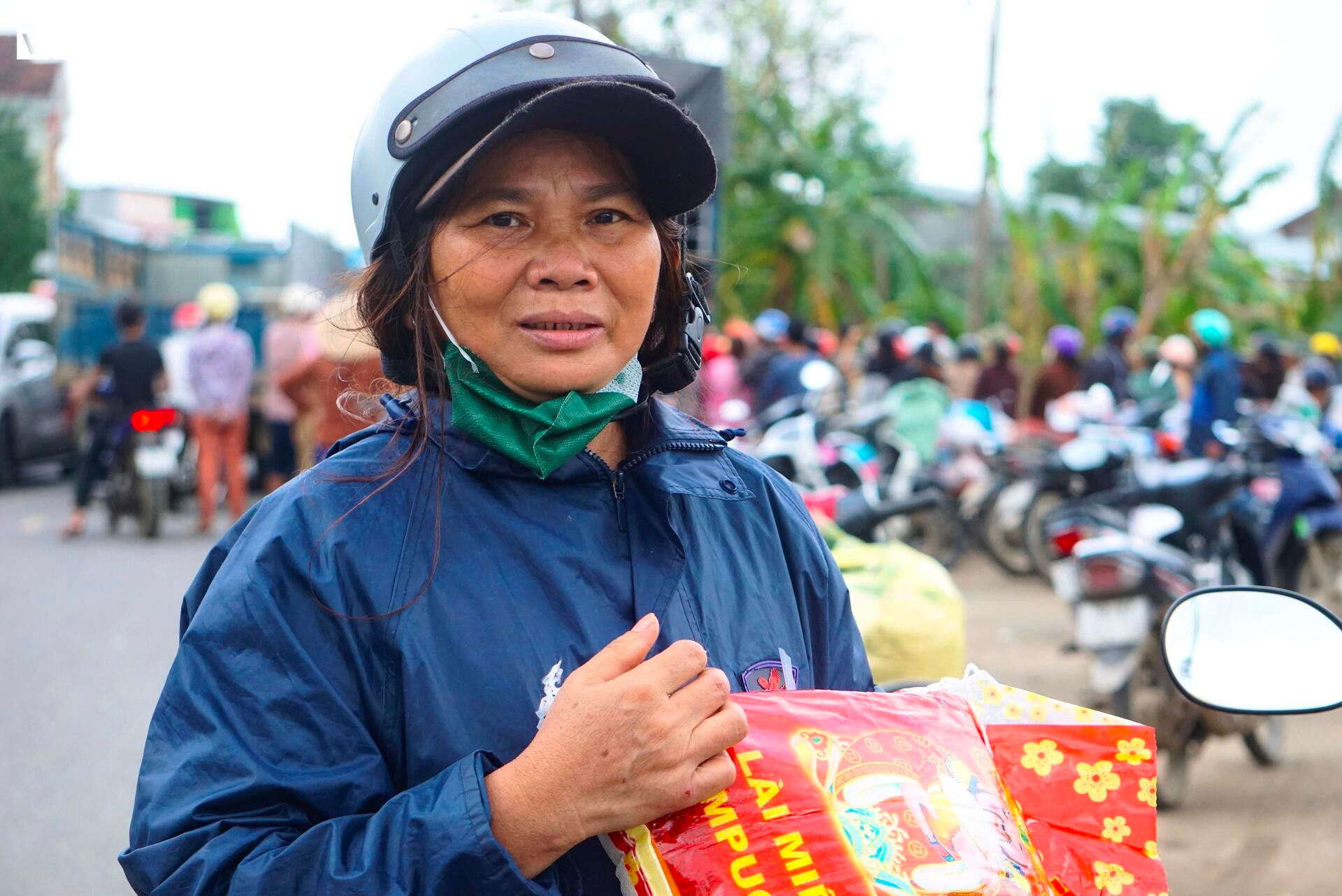 Cô Nguyễn Thị Kim Hoa (55 tuổi) xếp hàng từ sáng sớm khi nghe thông tin có đoàn thiện nguyện tới phát gạo: "Giờ có được túi gạo là mừng lắm, chứ lúa ngâm nước mọc mầm hư hết rồi".