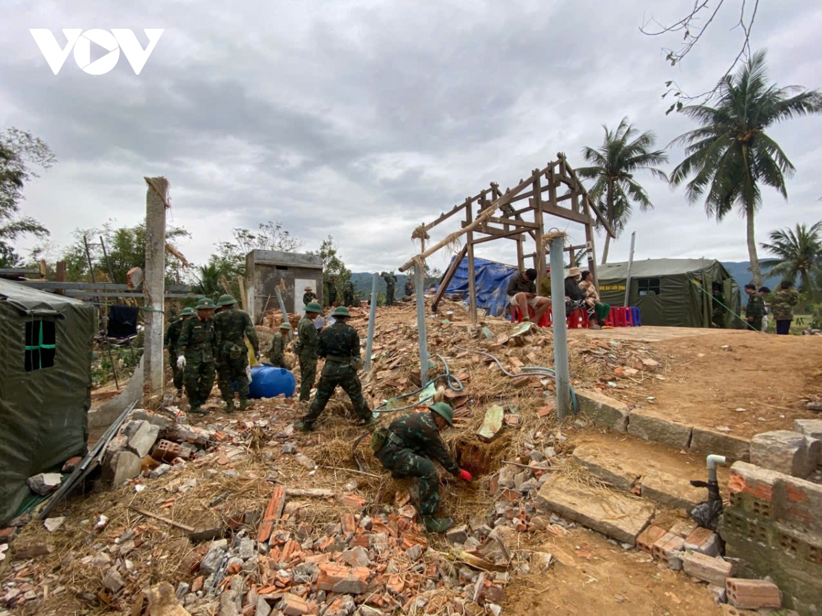 Giữa những bộn bề, ngổn ngang sau lũ dữ, cả quân và dân cùng chung tay xây dựng lại thôn, làng