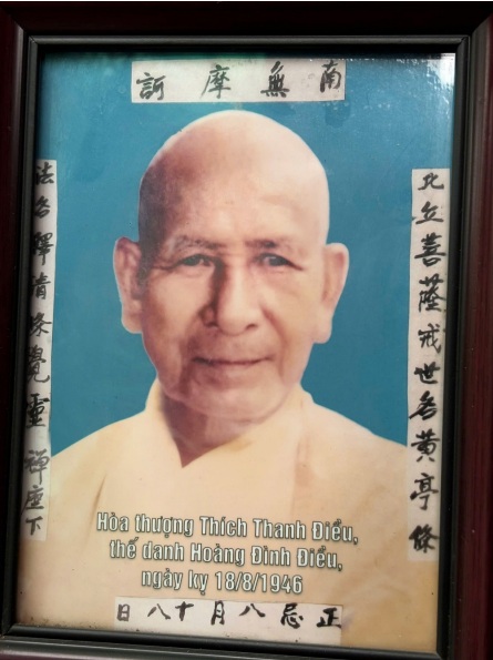 “Vào khoảng năm 1917, Sư cụ Hoàng Đình Điều (7), con thứ ba của Cai Kinh (Hoàng Đình Kinh đã đánh cho Pháp nhiều trận kinh hoàng), là một trong những tướng trẻ trong nghĩa quân Đề Thám, về tu ở Chùa Vua. Sư Điều vừa chỉnh trang lại chùa làm nơi hành đạo, bề ngoài mở lò dạy võ, nhưng bên trong bí mật tụ tập người chống Pháp. Trong số môn sinh của sư Điều, có ông Hai Nhỡ mở lò dạy võ theo nghề Thầy, ông Ba Đen hay đi thi đấu thể thao, ông giáo Long,… Phần lớn học trò của sư Điều về sau đã tham gia các phong trào, chủ yếu là Việt Minh, chống thực dân Pháp”.