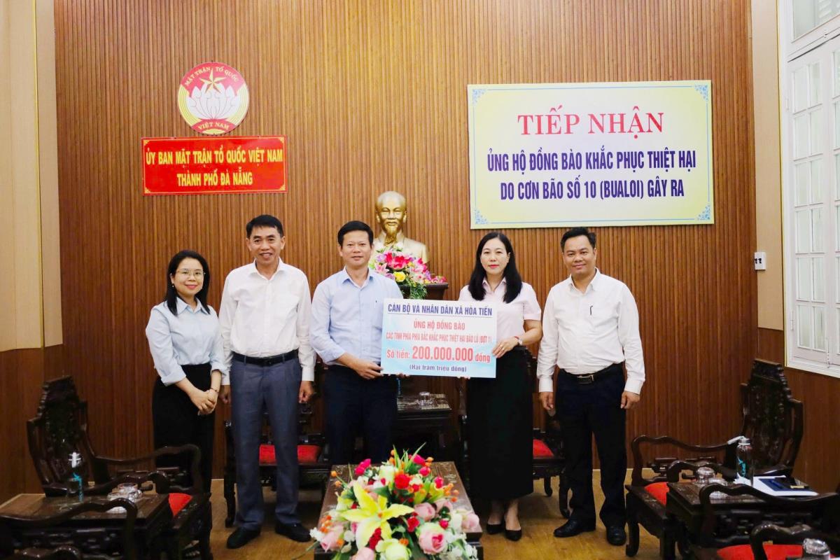 Đảng ủy, Ủy ban MTTQ Việt Nam xã Hòa Tiến trao số tiền ủng hộ đồng bào các tỉnh bị ảnh hưởng cơn bão số 10 tại Ủy ban MTTTQ Việt Nam TP Đà Nẵng
