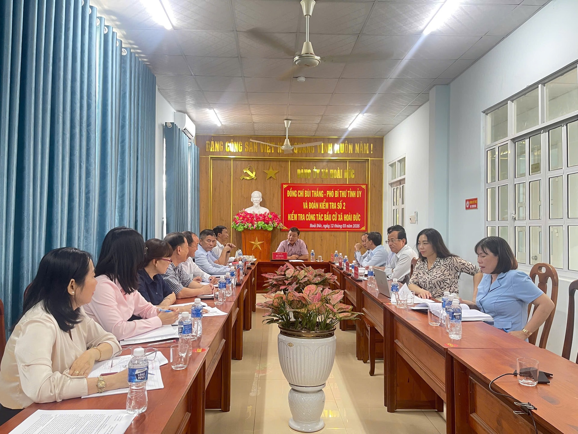 Phó Bí thư Tỉnh ủy, Phó Trưởng Ban Chỉ đạo bầu cử ĐBQH khóa XVI và đại biểu HĐND các cấp nhiệm kỳ 2026-2031 Bùi Thắng cùng các thành viên trong Đoàn công tác đã đôn đốc, hướng dẫn và trao đổi cụ thể với lãnh đạo địa phương về những nội dung quan trọng cần tiếp tục rà soát, hoàn thiện. Đồng thời động viên cán bộ cơ sở phải nêu cao tinh thần trách nhiệm, chuẩn bị thật chu đáo cho ngày bầu cử.