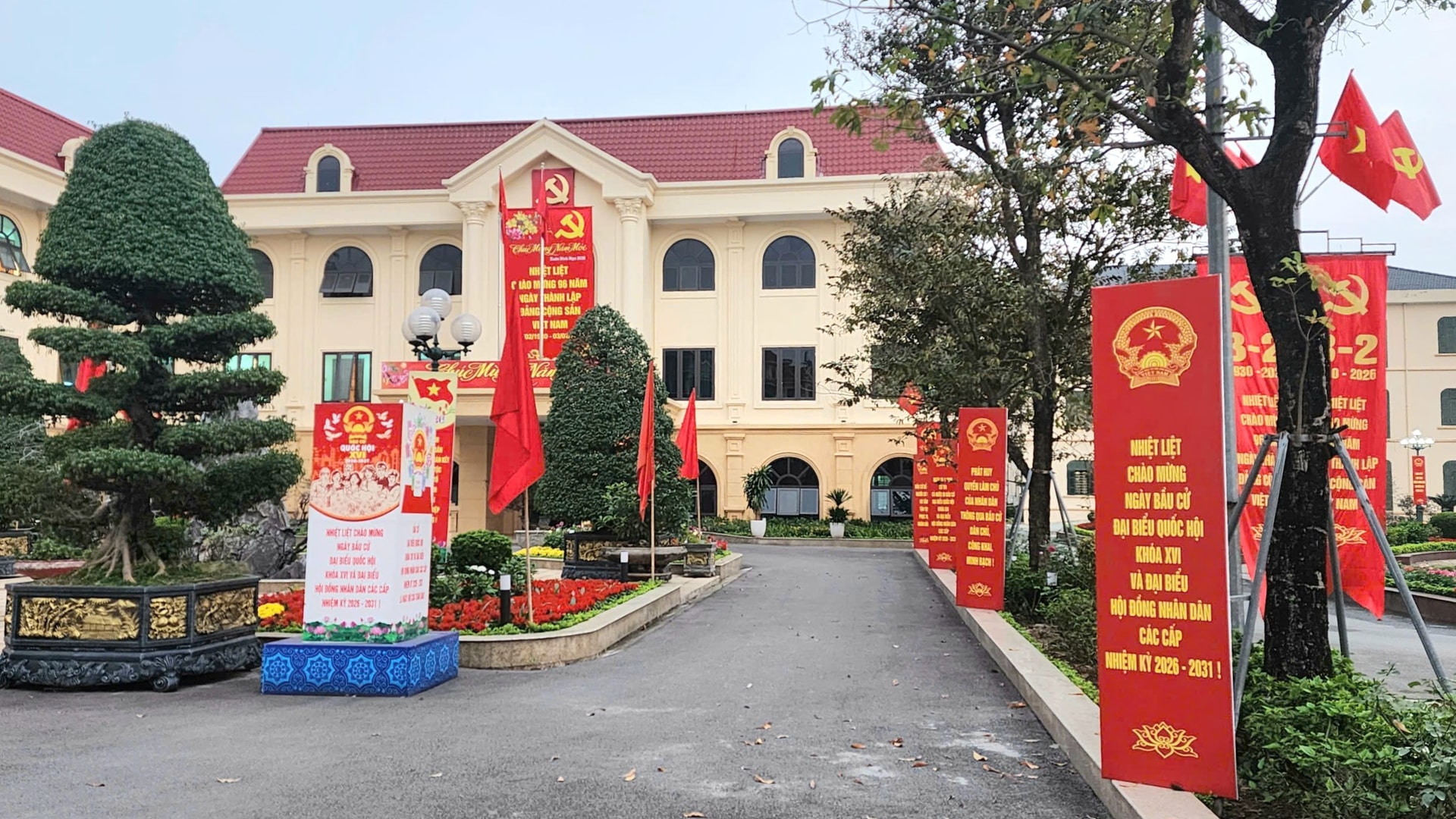 Dọc các tuyến đường ngõ xóm, nhờ sự chung tay xã hội hóa của người dân, diện mạo quê hương được chỉnh trang sạch đẹp. Tổng cộng có 30 cụm pano lớn, 28 cụm pano nhỏ hàng chục nghìn lá cờ Đảng, cờ Tổ quốc các loại đã được huy động để trang trí trực quan. Hai điểm "check-in" tại vườn hoa trung tâm xã và khu ngã năm quốc lộ 32 không chỉ là nơi vui chơi mà còn là điểm nhấn tuyên truyền độc đáo, thu hút sự chú ý của cử tri trẻ.