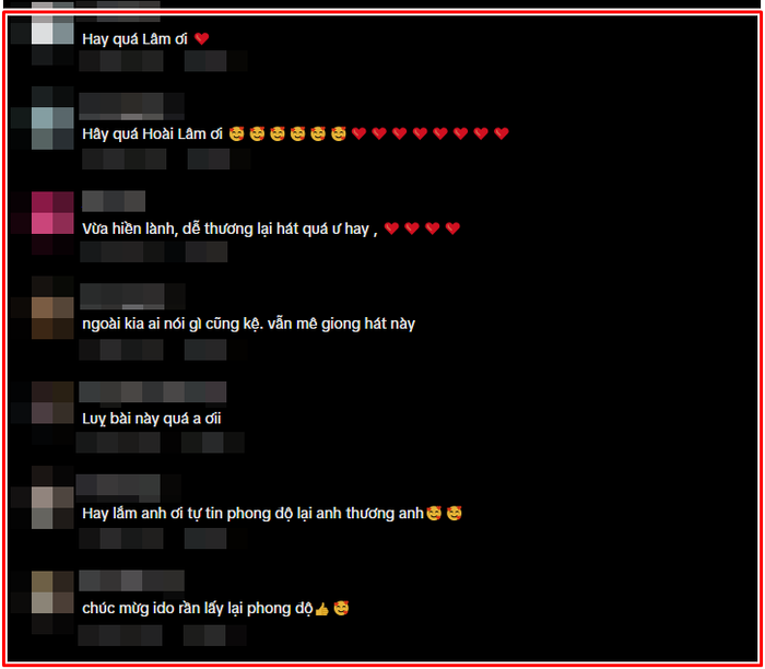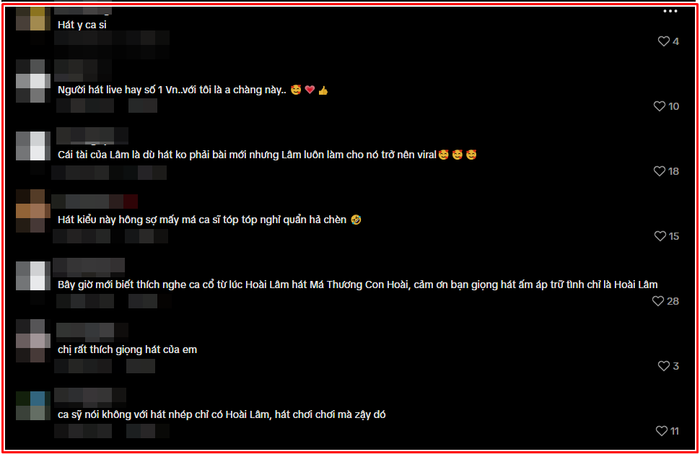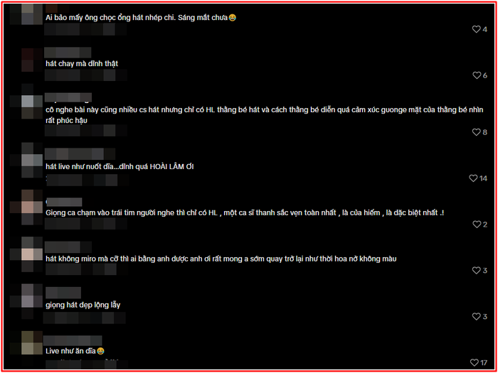 Bên cạnh đó, một bộ phận khán giả cũng bày tỏ niềm tự hào và sự bảo vệ trước những ý kiến nghi ngờ năng lực của Hoài Lâm. Họ thẳng thắn phản bác những lời cho rằng nam ca sĩ hát nhép, khẳng định "ai bảo hát nhép thì sáng mắt chưa". Thái độ dứt khoát và sự ủng hộ nhiệt thành này cho thấy Hoài Lâm vẫn giữ được vị trí vững chắc trong lòng người hâm mộ, bất chấp những biến động trong sự nghiệp.