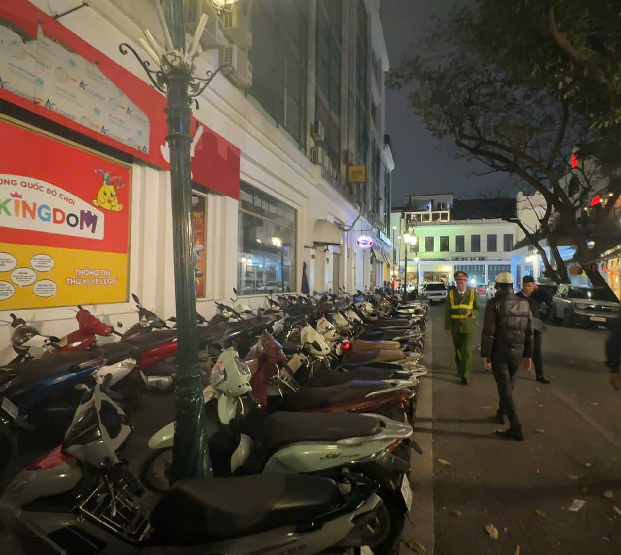 Cơ quan chức năng xử phạt điểm trông xe trái phép tại số 44 Tràng Tiền vào tối mùng 3 Tết. Ảnh: PV