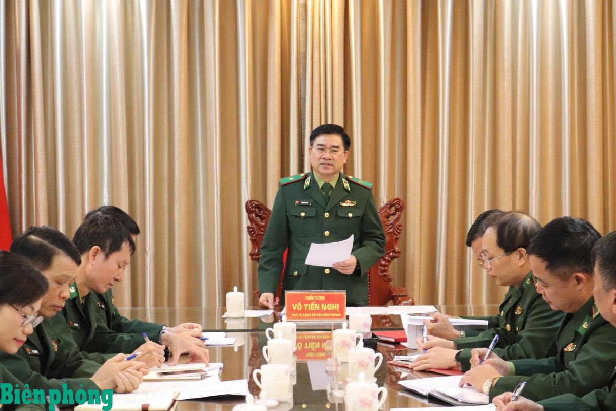 Thiếu tướng Văn Ngọc Quế, Phó Chủ nhiệm Chính trị Bộ đội Biên phòng phát biểu tại cuộc họp. Ảnh: TK