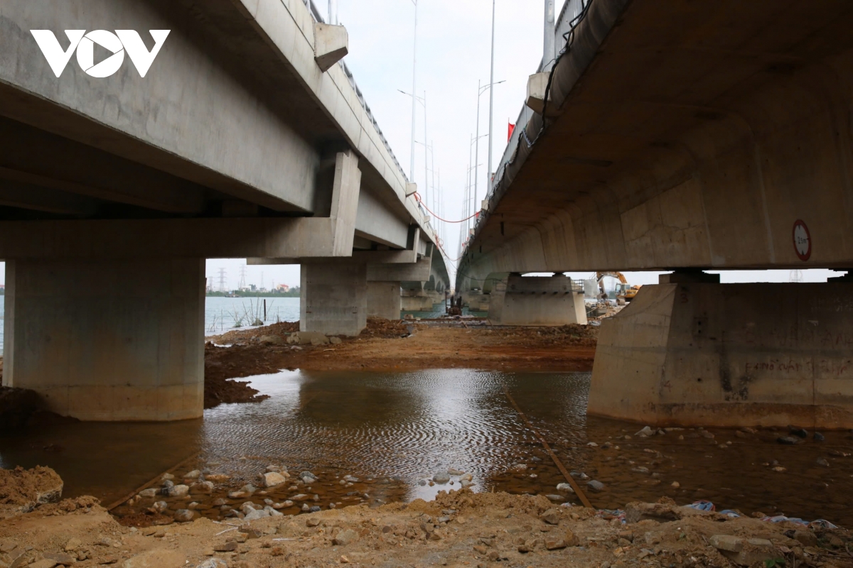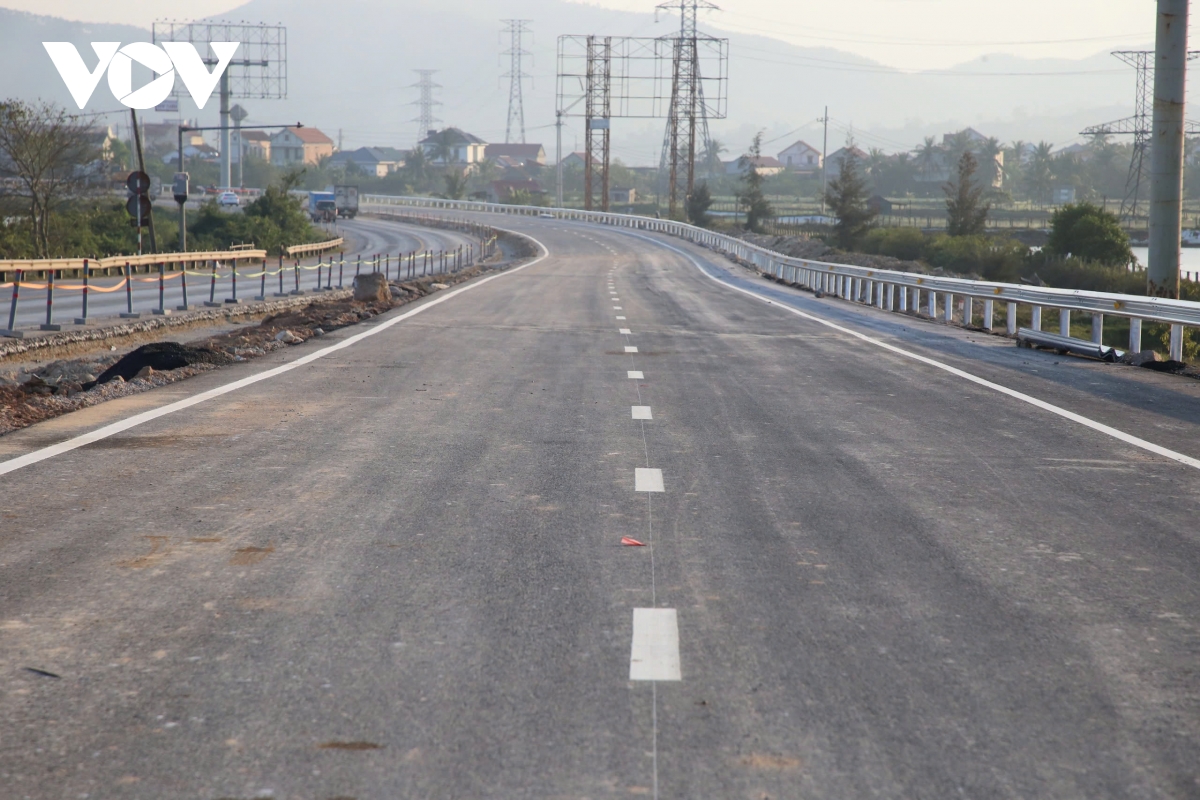 Đường dẫn lên cầu Quán Hàu được thảm nhựa, kết nối đồng bộ với Quốc lộ 1A.