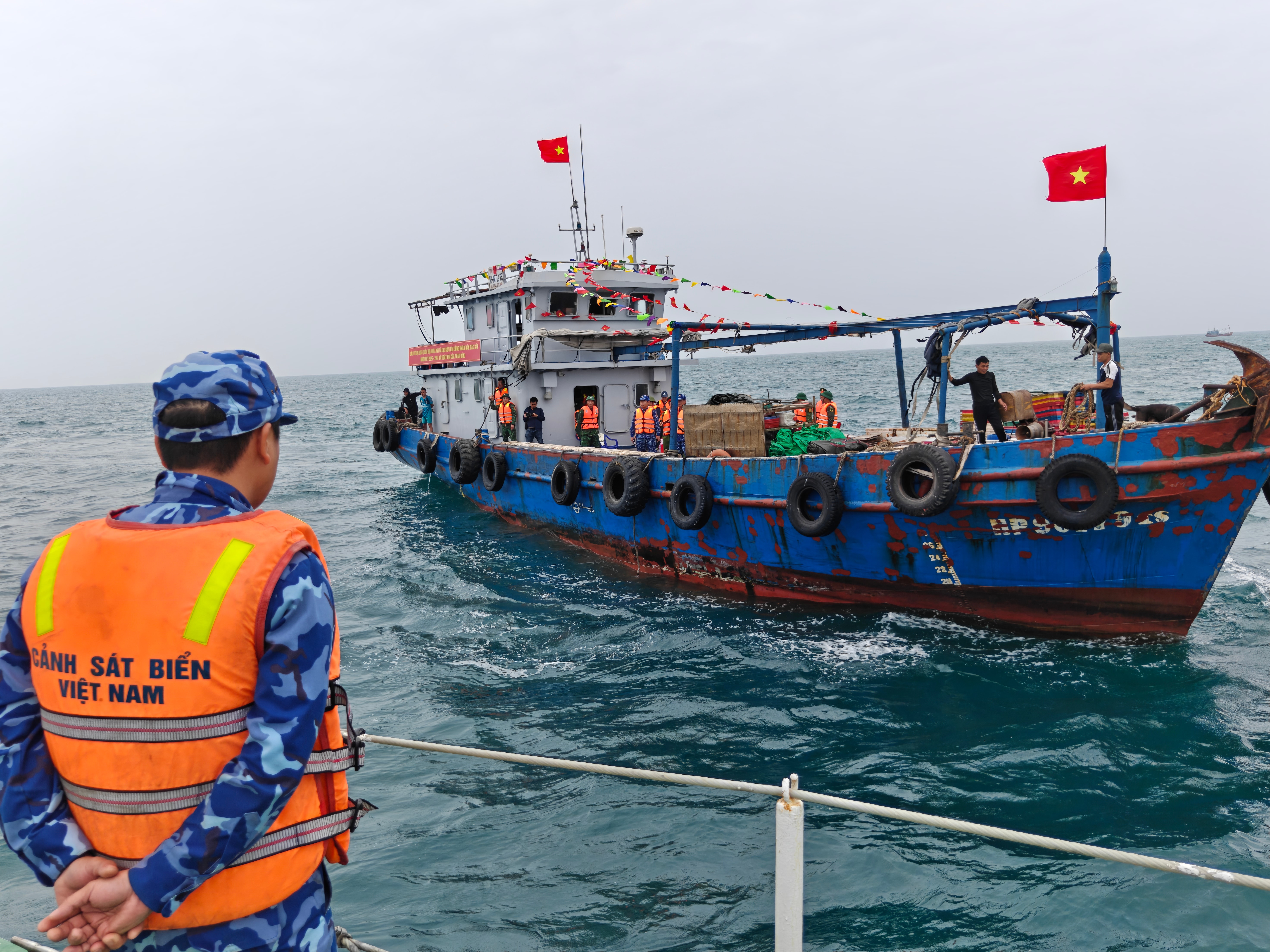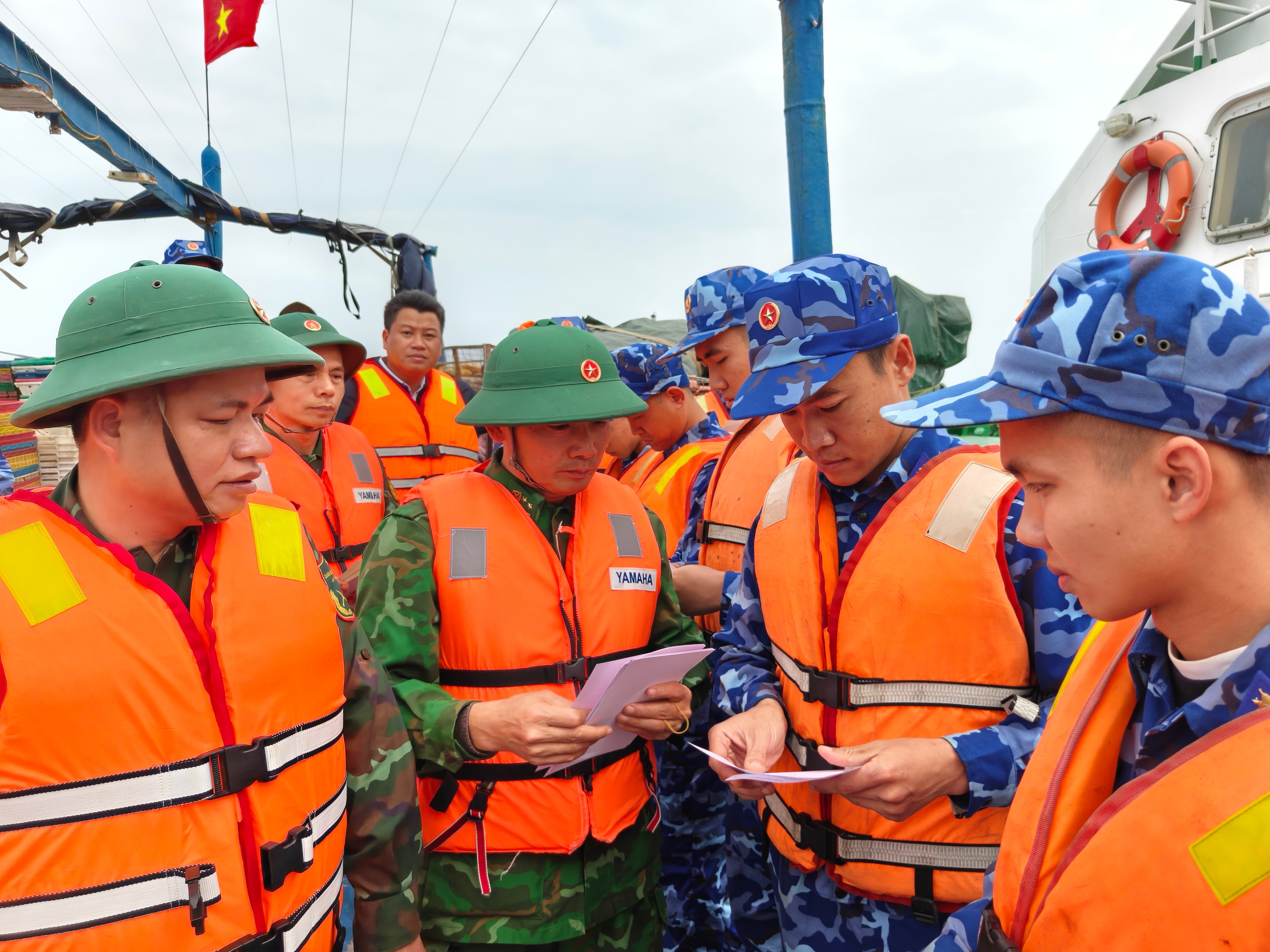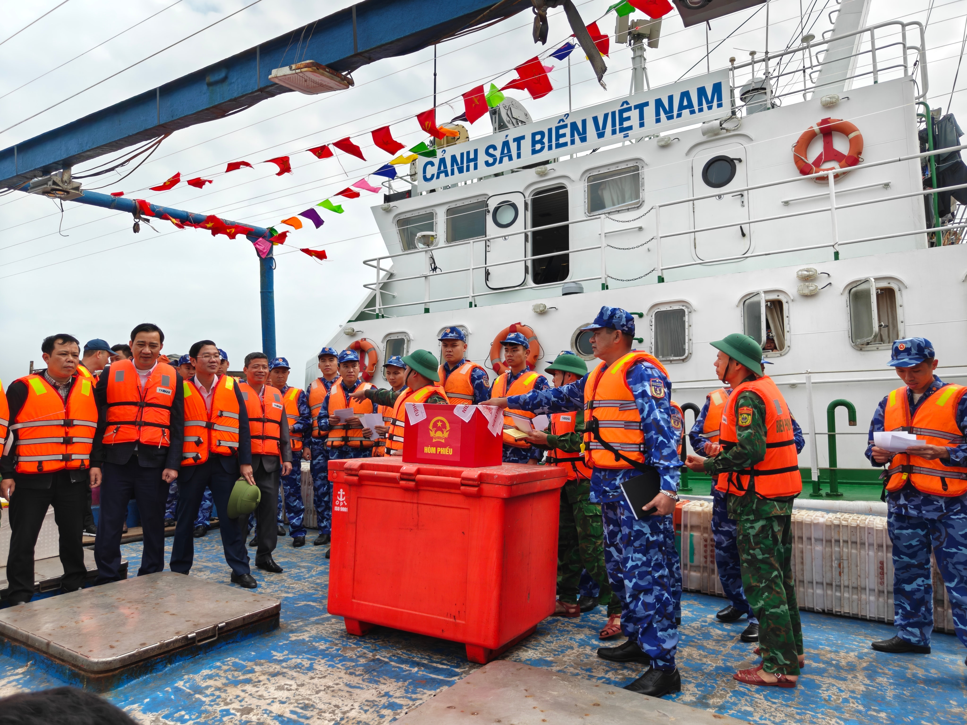 Cán bộ, chiến sĩ trên tàu cảnh sát biển, Bộ Tư lệnh Vùng Cảnh sát biển 1 nhận phiếu bầu cử. Ảnh: Tùng Lâm