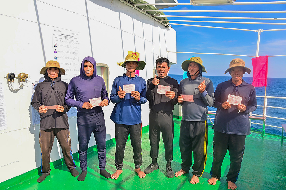 Hơn 600 cử tri - là những cán bộ, chiến sĩ đang công tác tại 15 nhà giàn DK1, trên các tàu trực và ngư dân đang khai thác thủy hải sản trong khu vực vui mừng thực hiện trách nhiệm, quyền công dân ngay trên vùng biển thiêng liêng của Tổ quốc. Trong đó, có 27 ngư dân trên 4 tàu cá đã chủ động liên hệ để tham gia bầu cử sớm sau khi được tuyên truyền.