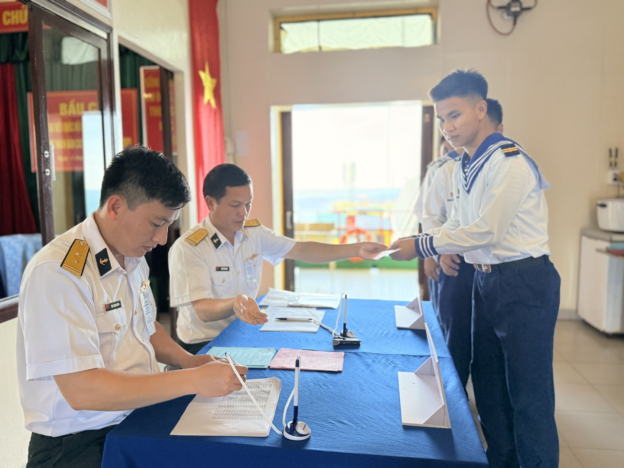 >>> Một số hình ảnh thực hiện nhiệm vụ tổ chức bầu cử sớm trên biển