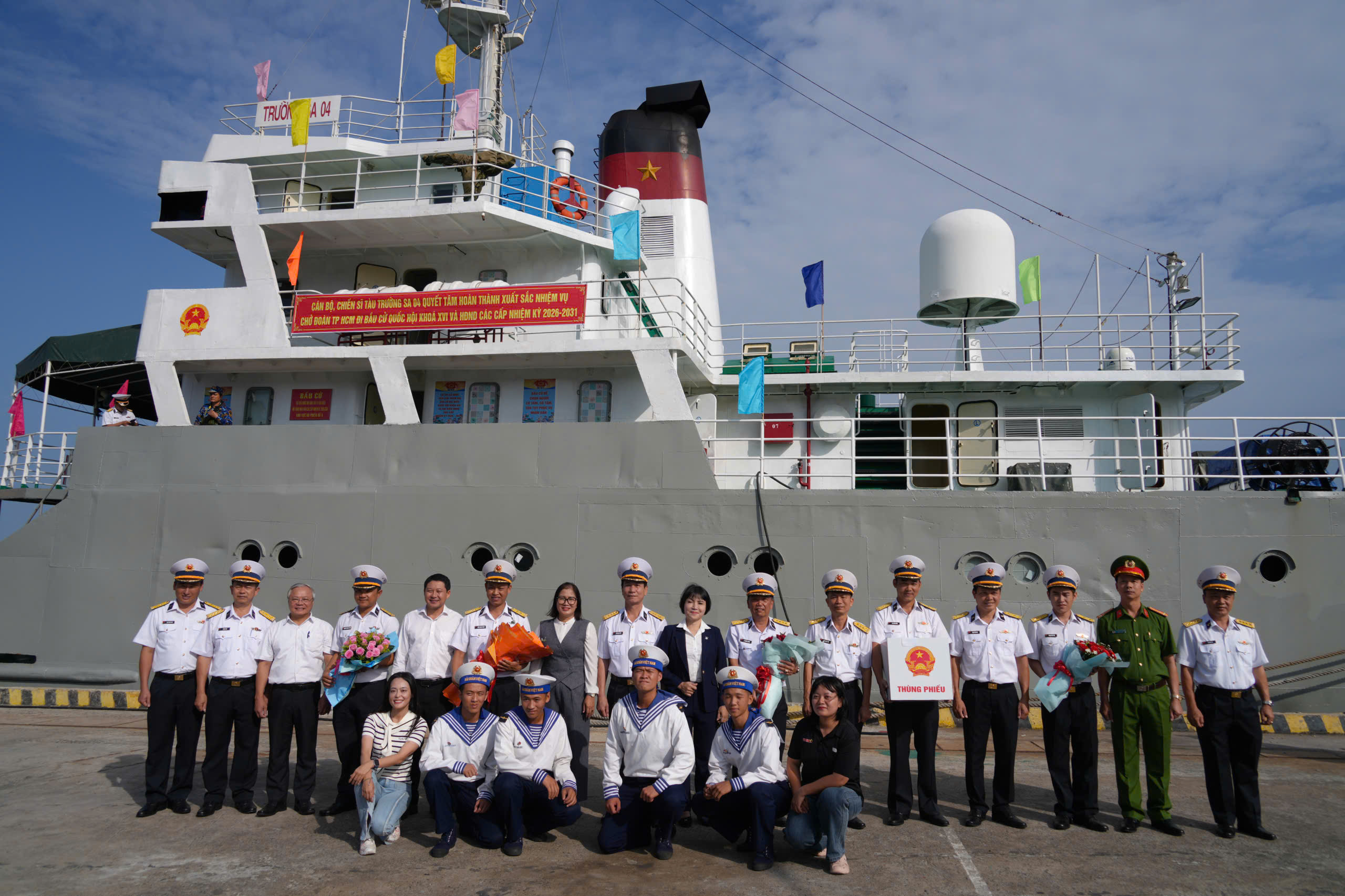 Sáng 12-3, Đoàn công tác của Tổ bầu cử sớm trên 2 tàu Trường Sa 04 và Trường Sa 21 (thuộc Lữ đoàn 125, Bộ Tư lệnh Vùng 2 Hải quân) đã cập Cảng Kinh tế Quốc phòng Trường Sa (TPHCM), đưa thùng phiếu bầu cử trở về đất liền an toàn. Đoàn đã hoàn thành tổ chức bầu cử sớm trên biển cho các lực lượng đang làm nhiệm vụ và ngư dân.