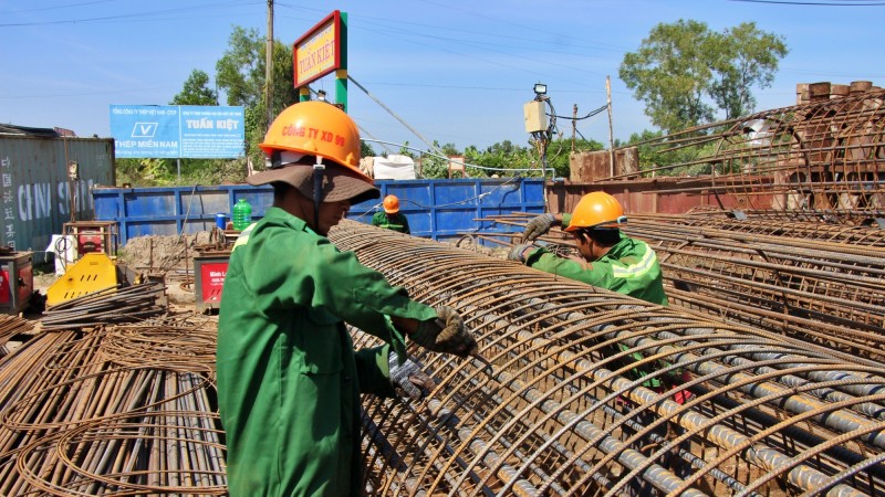 Công nhân đang thi công tại công trình cầu Sông Ông Đốc 1 (xã Khánh An, tỉnh Cà Mau). Nguồn: VGP.