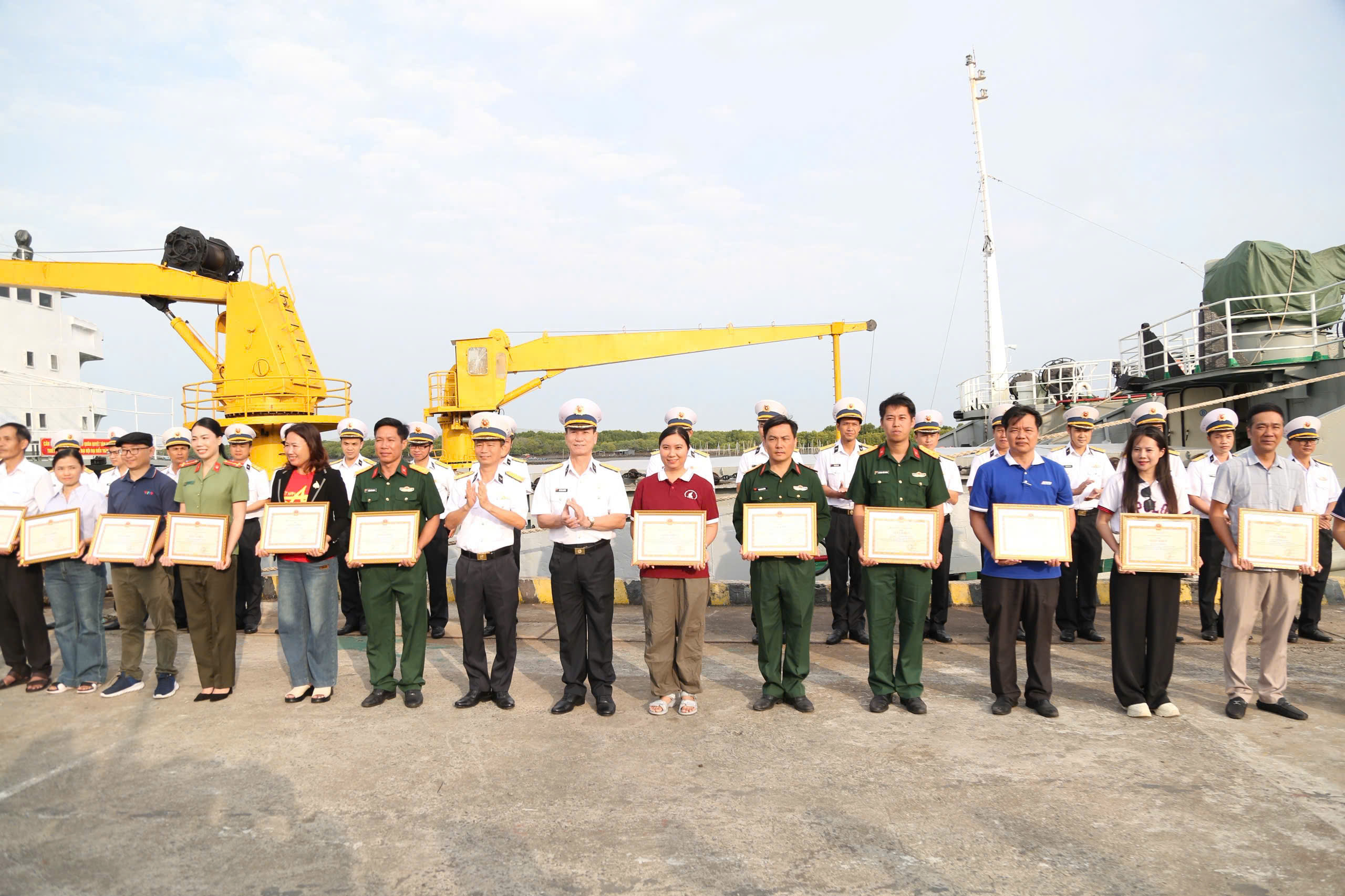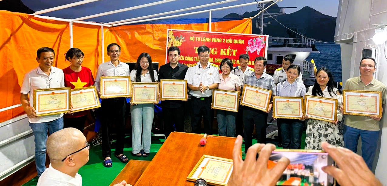 Bộ Tư lệnh Vùng 2 Hải quân trao giấy khen của Bộ Tư lệnh Vùng 2 Hải quân cho các cán bộ, chiến sĩ có thành tích tốt trong chuyến công tác.