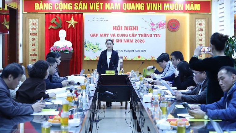 Phó Cục trưởng Dự trữ Nhà nước Nguyễn Thị Phố Giang cung cấp thông tin cho các cơ quan báo chí về hoạt động của Cục Dự trữ Nhà nước năm 2025 và định hướng năm 2026. (Ảnh: Minh Đức)