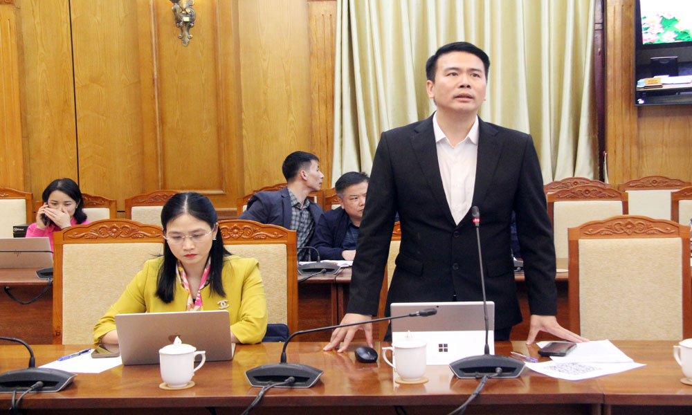 Đồng chí Nguyễn Ngọc Nam, Phó Chánh Văn phòng UBND tỉnh, Giám đốc Trung tâm Phục vụ hành chính công tỉnh nêu ý kiến tại hội nghị.