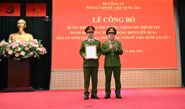Chiều 23/12, Trung tâm Dữ liệu quốc gia tổ chức Lễ công bố Quyết định số 2224/QĐ – TTg, ngày 8/10/2025 của Thủ tướng Chính phủ về việc đưa công trình Trung tâm Dữ liệu quốc gia số 1 vào danh mục công trình quan trọng liên quan đến an ninh quốc gia. Đây là sự kiện có ý nghĩa quan trọng, đánh dấu bước phát triển mới trong công tác xây dựng và đảm bảo an ninh, an toàn dữ liệu quốc gia; đồng thời tiếp tục khẳng định vai trò chiến lược của Trung tâm Dữ liệu quốc gia.