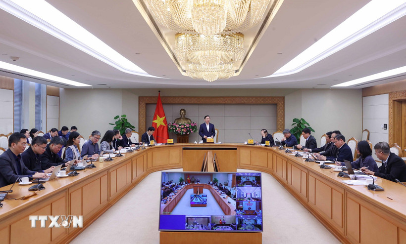 Phó Thủ tướng Trần Hồng Hà chủ trì cuộc họp nghe báo cáo hoàn thiện dự thảo Nghị định về một số chính sách phát triển thủy sản, kết nối trực tuyến với điểm cầu của 6 tỉnh, thành phố ven biển. (Ảnh: Văn Điệp/TTXVN)