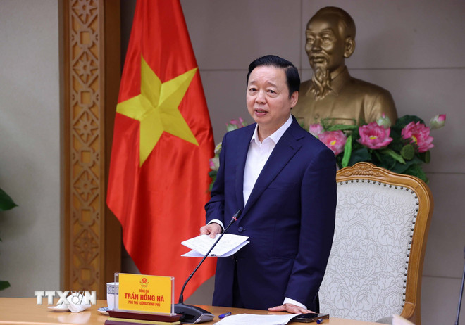 Phó Thủ tướng Trần Hồng Hà phát biểu kết luận cuộc họp. (Ảnh: Văn Điệp/TTXVN)