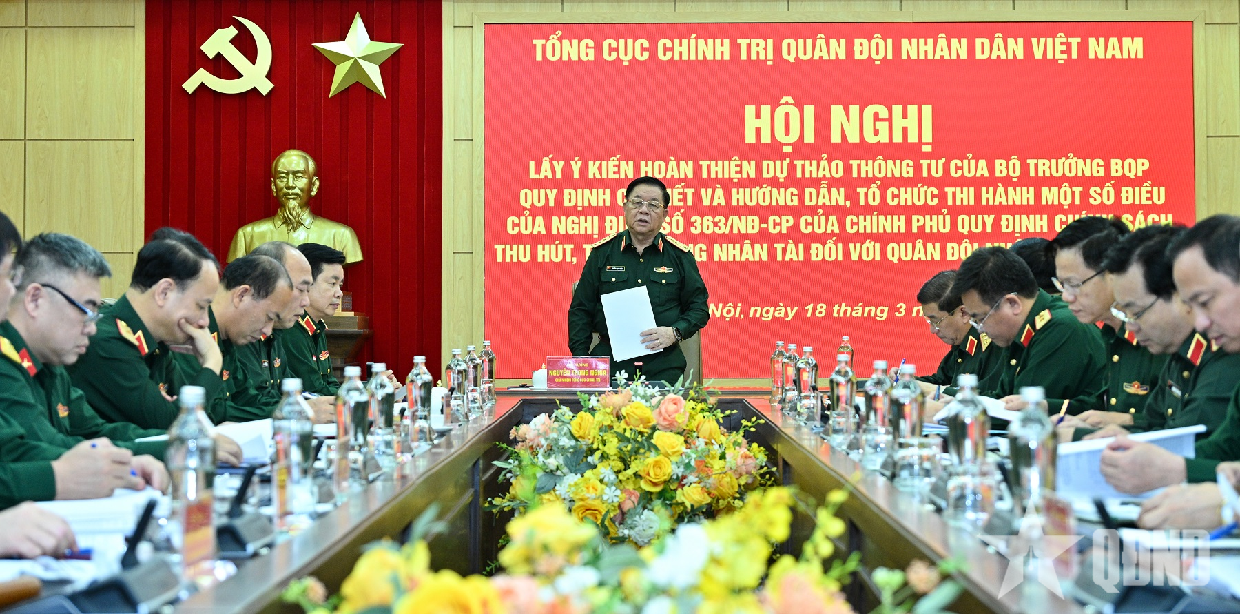 Phát biểu tại hội nghị, Đại tướng Nguyễn Trọng Nghĩa nhấn mạnh, việc xây dựng và hoàn thiện thông tư là bước quan trọng nhằm cụ thể hóa chủ trương của Đảng, chính sách của Nhà nước về thu hút, trọng dụng nhân tài trong Quân đội, bảo đảm tính khả thi cao, đáp ứng yêu cầu xây dựng Quân đội cách mạng, chính quy, tinh nhuệ, hiện đại.