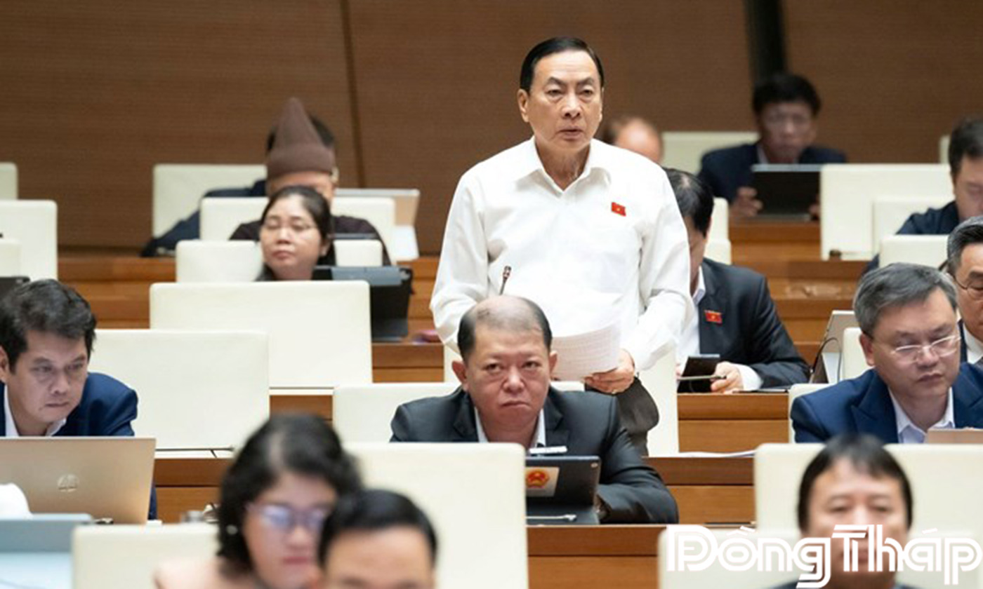 Đại biểu Phạm Văn Hòa phát biểu thảo luận tại hội trường.