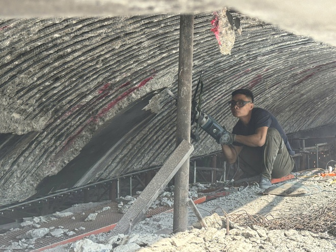 Trước đó các công nhân đã sử dụng máy đục để bóc toàn bộ các phần bê tông bị hư hại sau đó thay thế bằng các vật liệu mới nhằm bảo vệ cho kết cấu phía trong của công trình.