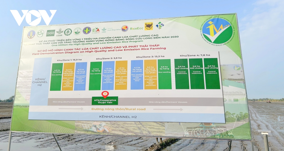 Từ năm 2024, Bộ NN&MT đã phối hợp với 5 địa phương triển khai 7 mô hình thí điểm Đề án 1 triệu hecta lúa chất lượng cao, phát thải thấp gắn với tăng trưởng xanh vùng ĐBSCL trong hai vụ Hè Thu và Thu Đông với diện tích 50 ha/mô hình. Qua thí điểm các mô hình mang lại những lợi ích rõ rệt cả về kinh tế lẫn môi trường. Chi phí sản xuất giảm từ 8,2% - 24,2%, giảm lượng giống từ 30-50%, giảm lượng phân bón hóa học từ 30 - 70 kg phân bón/ha, giảm 1 - 4 lần phun thuốc bảo vệ thực vật và giảm 30 - 40% lượng nước tưới.