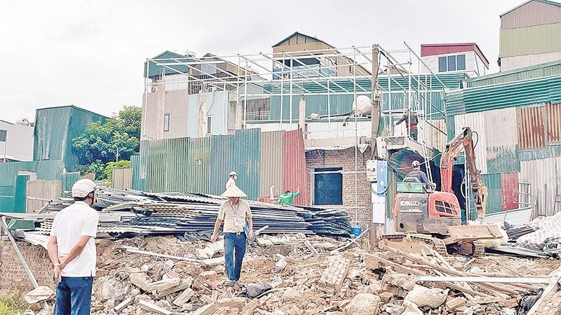 Lực lượng chức năng phường Khương Đình cưỡng chế công trình vi phạm đất đai, trật tự xây dựng. Ảnh: nhandan.vn