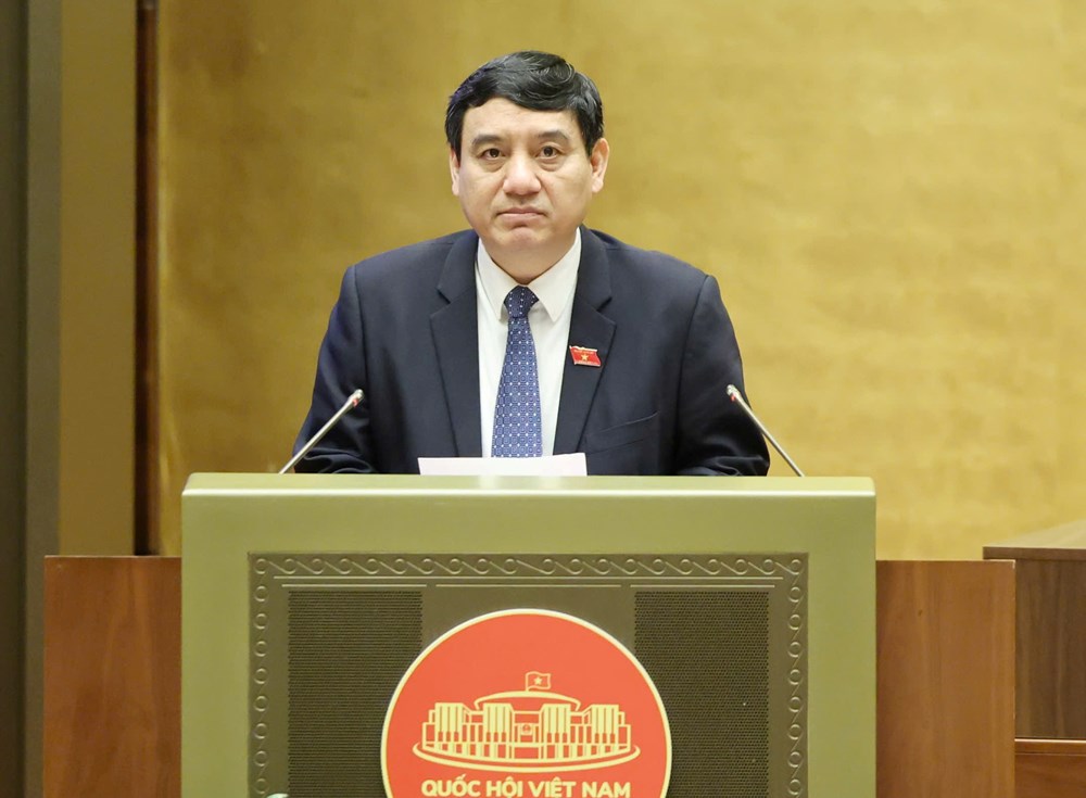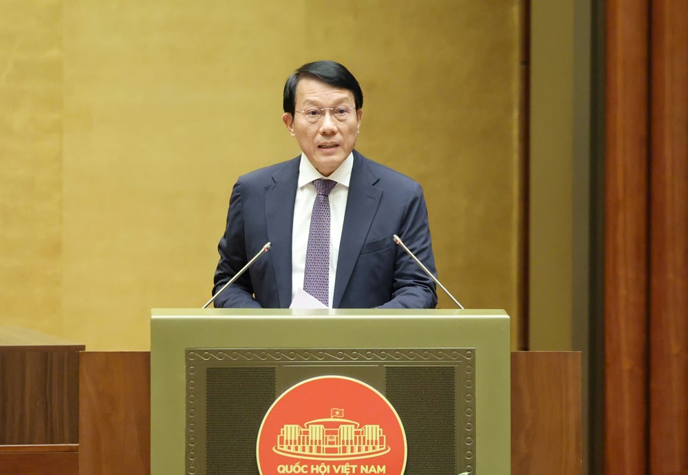 Bộ trưởng Bộ Công an Lương Tam Quang trình bày tờ trình thẩm tra dự án Luật