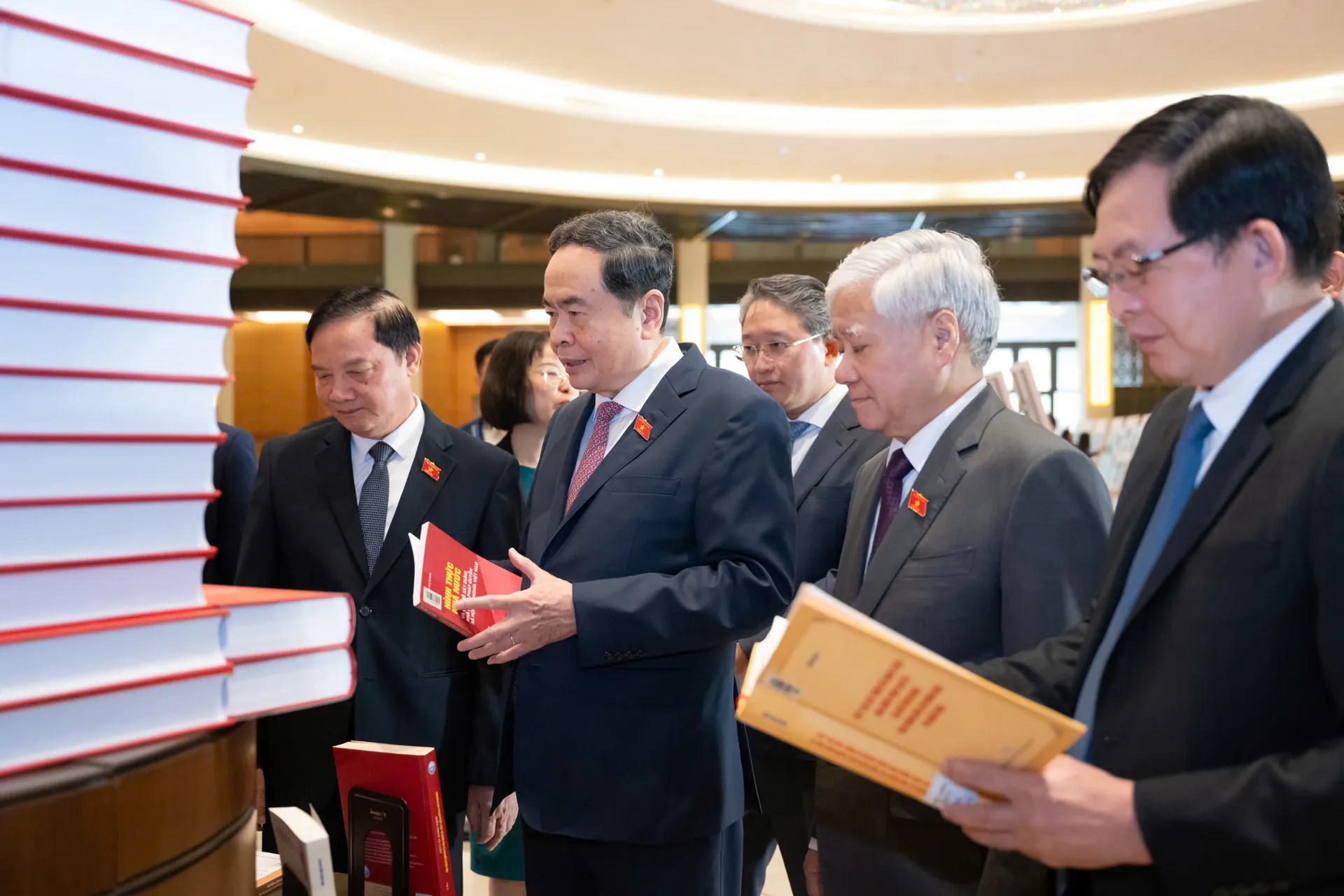 Chủ tịch Quốc hội Trần Thanh Mẫn và các đại biểu tham quan triển lãm “Quốc hội Việt Nam - Quá trình xây dựng và hoàn thiện hệ thống pháp luật”. Ảnh: Quochoi.vn