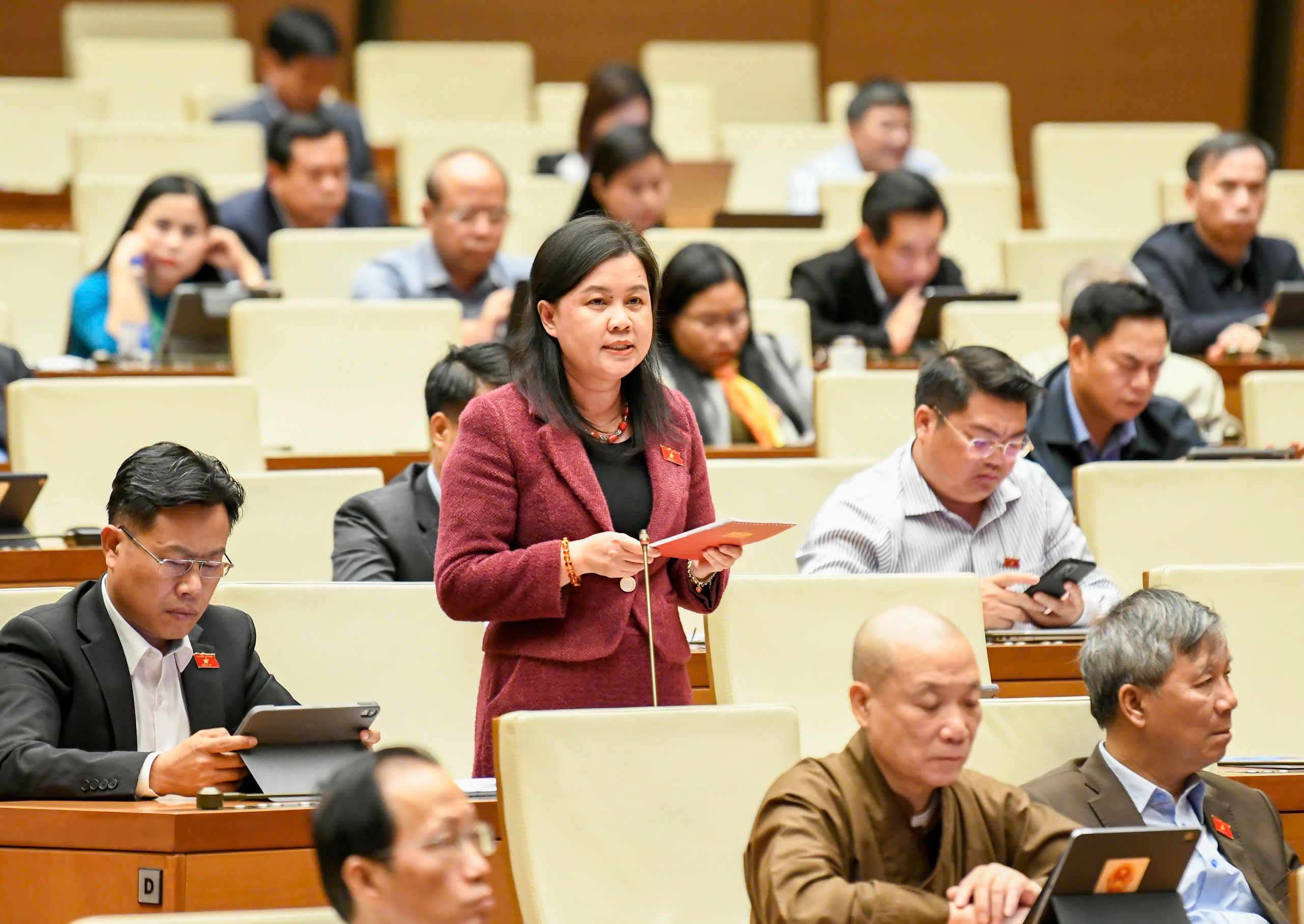 Đại biểu Quốc hội Triệu Thị Ngọc Diễm (đoàn thành phố Cần Thơ) góp ý vào dự thảo luật. Ảnh: Phạm Thắng.