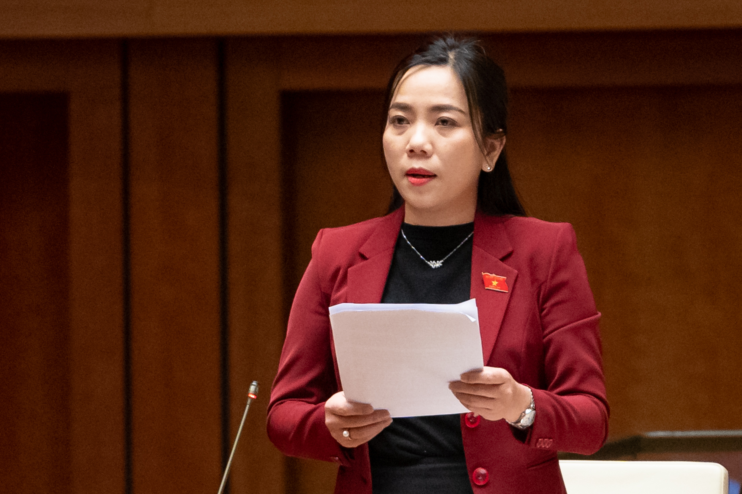 Đại biểu Nguyễn Phương Thủy (đoàn Hà Nội) ghi nhận điểm tiến bộ rất quan trọng trong bản dự thảo luật tiếp thu mới nhất. Ảnh: Quang Vinh.