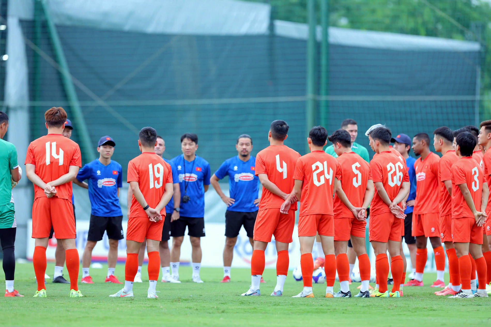 Chiều 3/6, tuyển Việt Nam có buổi tập tiếp theo chuẩn bị cho trận gặp Malaysia, vòng loại cuối Asian Cup 2027. Trước buổi tập, HLV Kim Sang Sik trao đổi khá lâu với các học trò về kế hoạch tập luyện cũng như tình hình nhân sự.