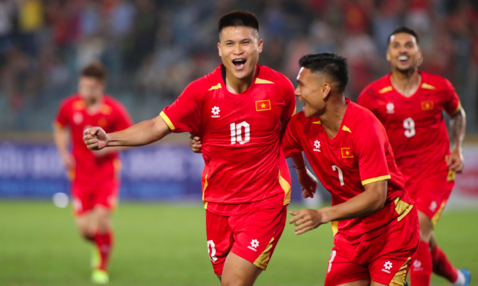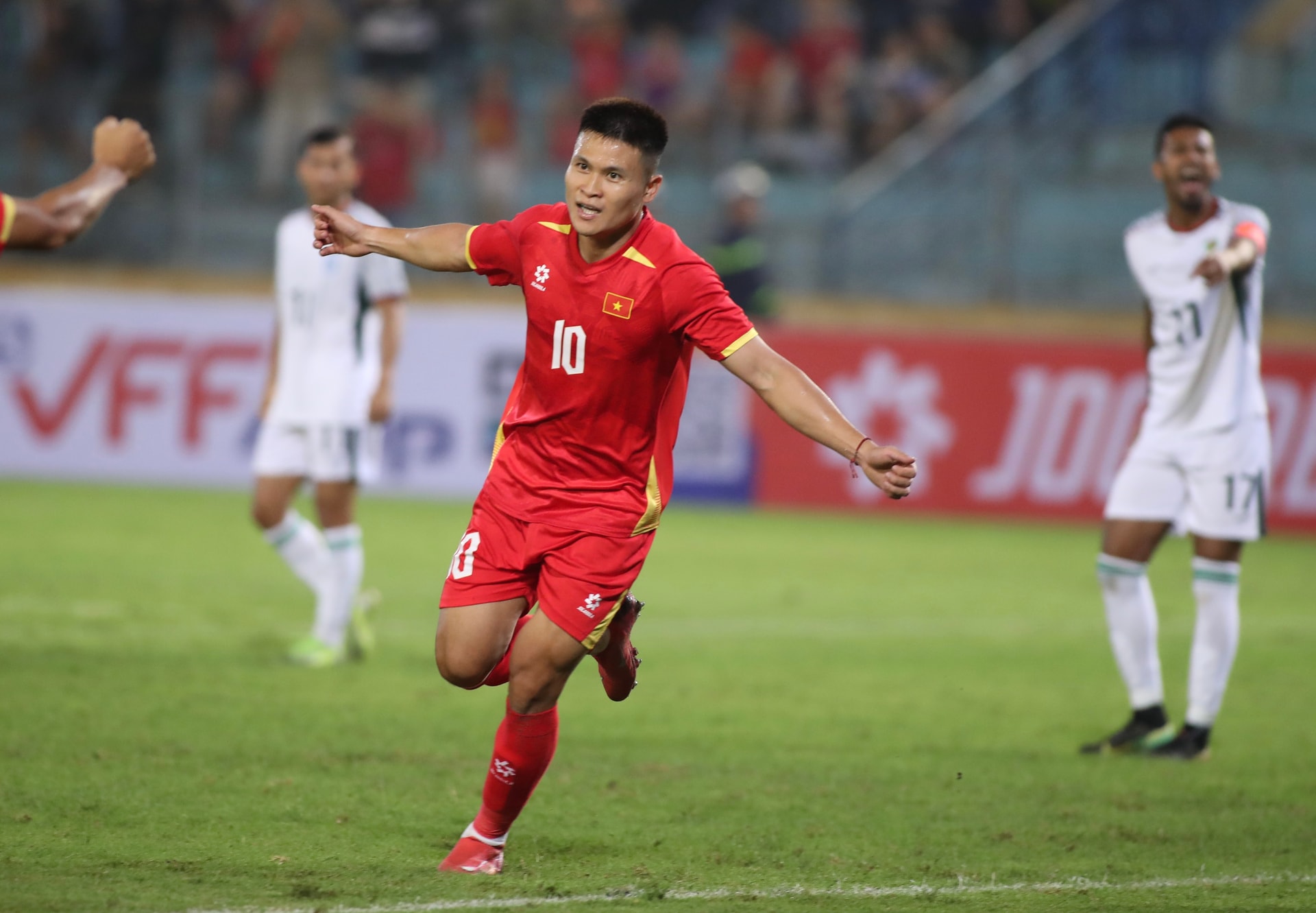 Tuấn Hải ăn mừng khi mở tỷ số cho tuyển Việt Nam. Ảnh: Ngọc Tú