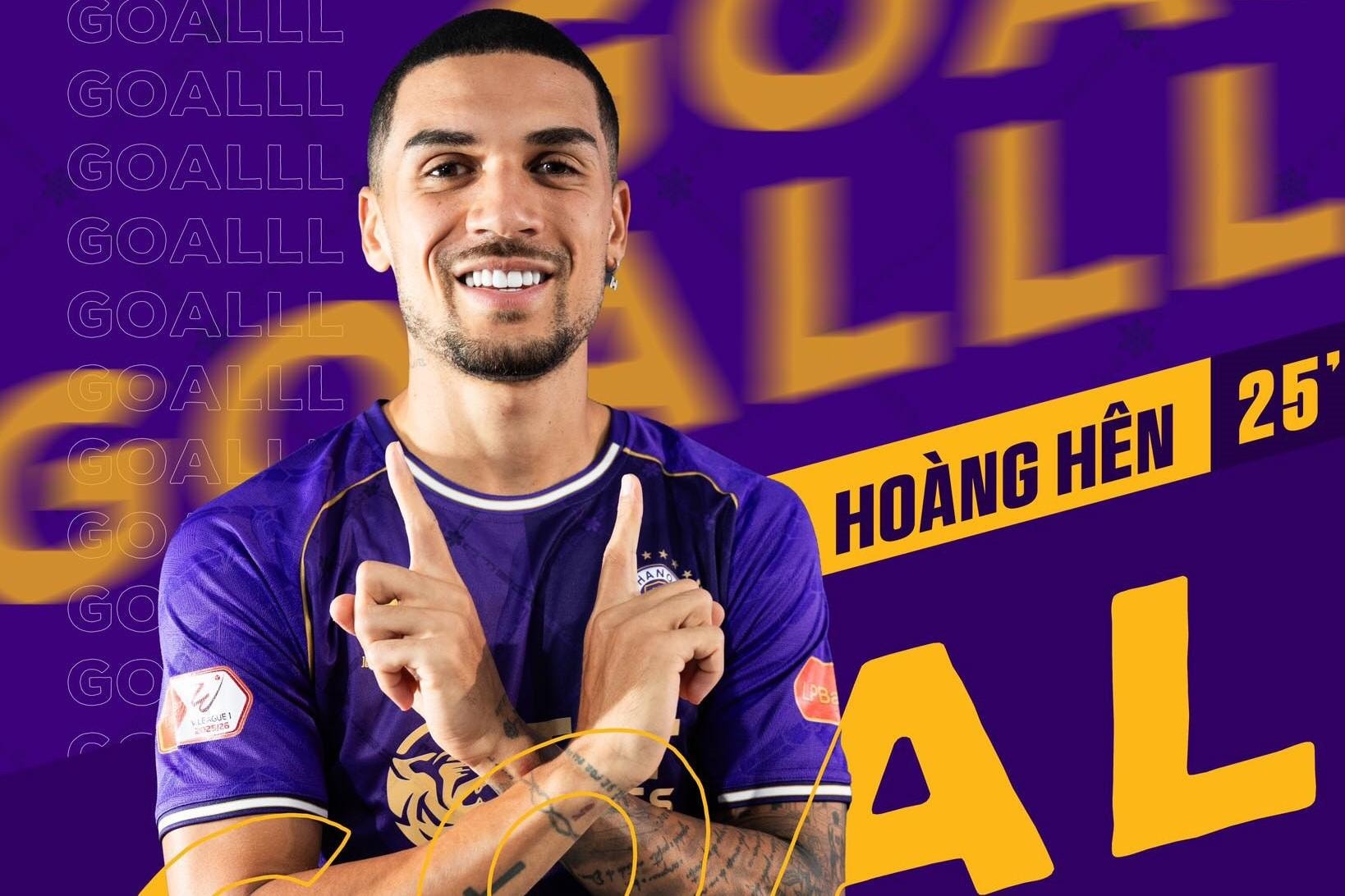Hoàng Hên tỏa sáng giúp Hà Nội FC thắng thuyết phục Công an Hà Nội. Ảnh Hà Nội FC
