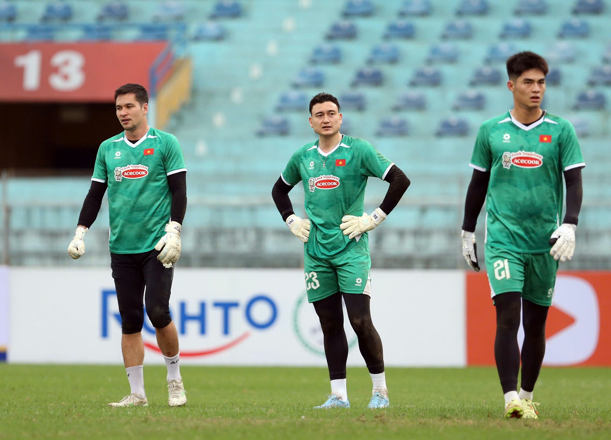 Bộ ba thủ môn của ĐT Việt Nam sẵn sàng cho cuộc đối đầu với các cầu thủ Bangladesh.