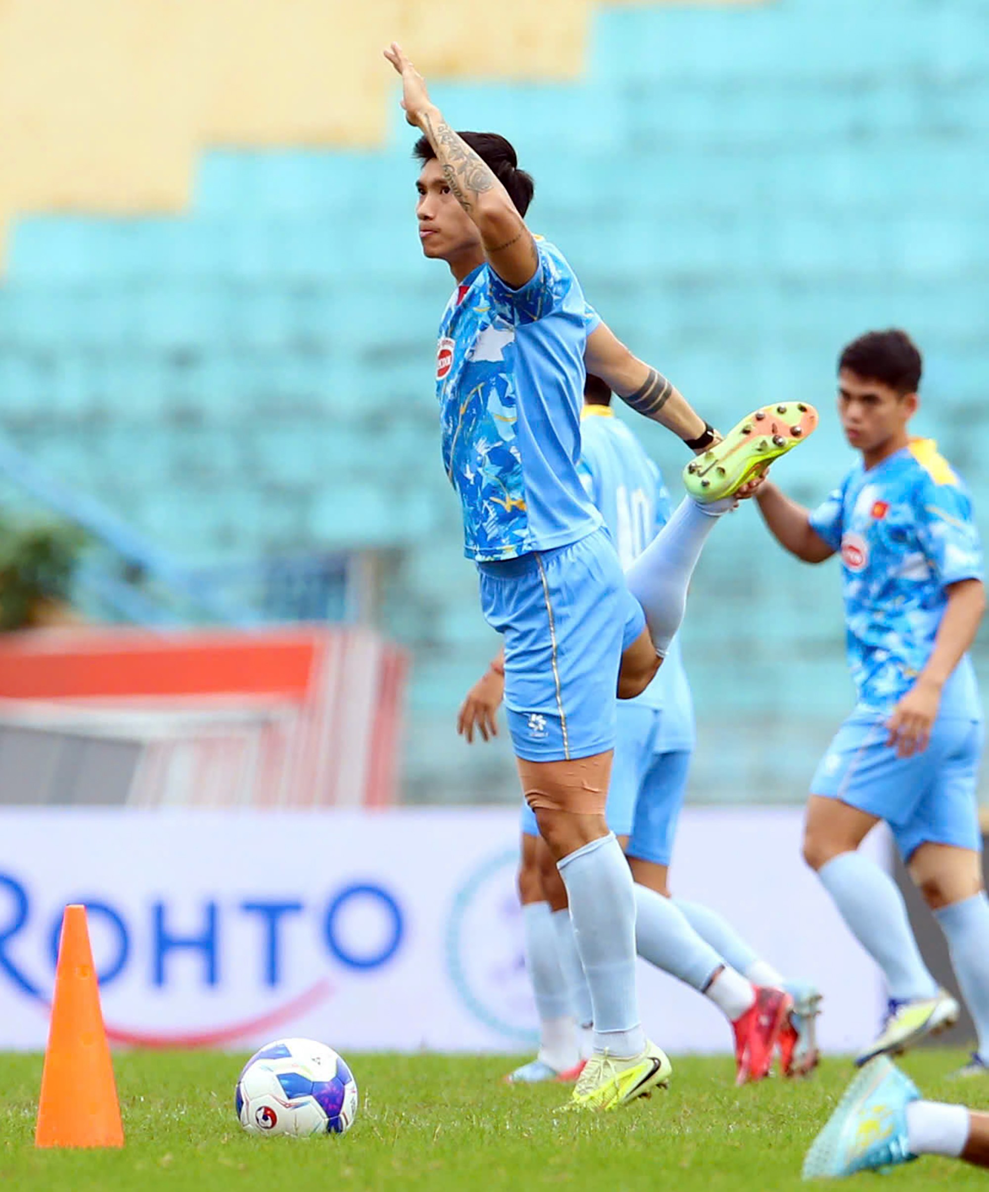 Ở phía trên, tân binh Hoàng Hên đang háo hức hơn bao giờ hết cho màn ra mắt ĐT Việt Nam.