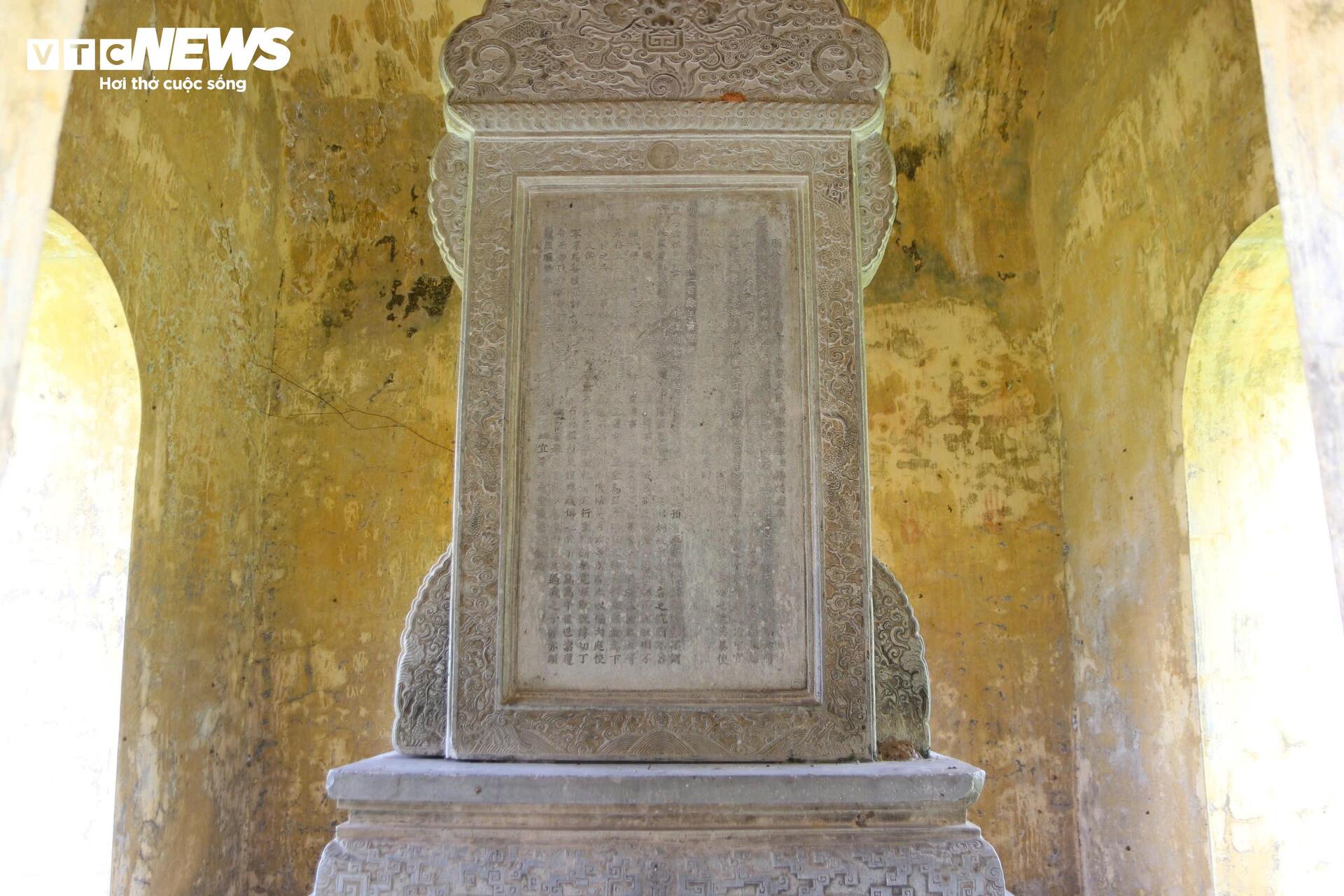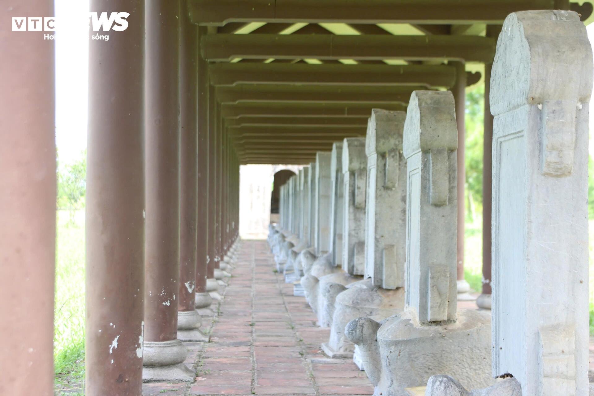 Trên 32 tấm bia này khắc tên, tuổi, quê quán của 293 vị Tiến sĩ triều Nguyễn, bắt đầu từ khoa thi đầu tiên năm 1822 (dưới thời vua Minh Mạng) đến khoa thi cuối cùng vào năm 1919 (dưới thời vua Khải Định). Tất cả các tấm bia đều được đặt trên con rùa làm bằng đá thanh và đá cẩm thạch.