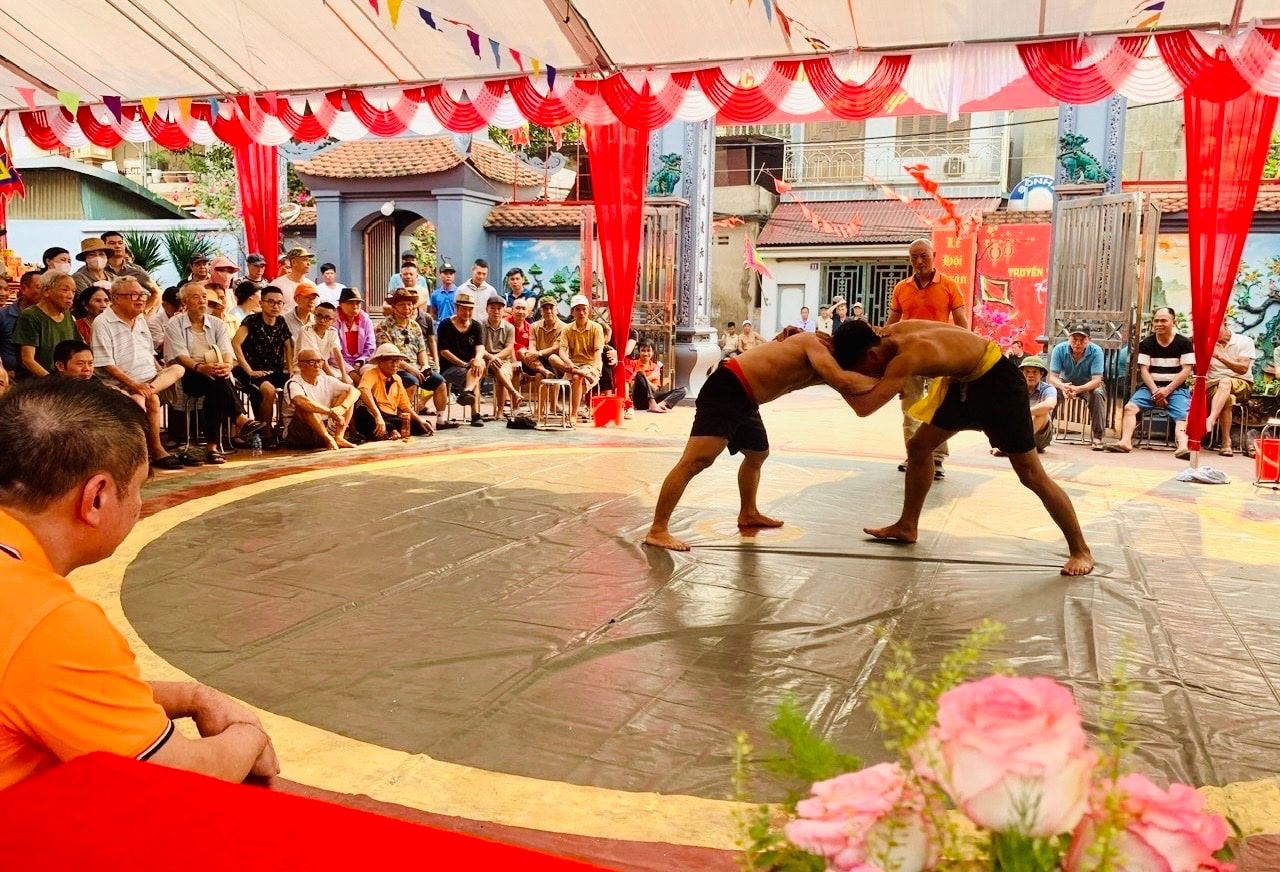 Giải đấu vật cổ truyền làng Yên Duyên. Ảnh: Nguyễn Tắc