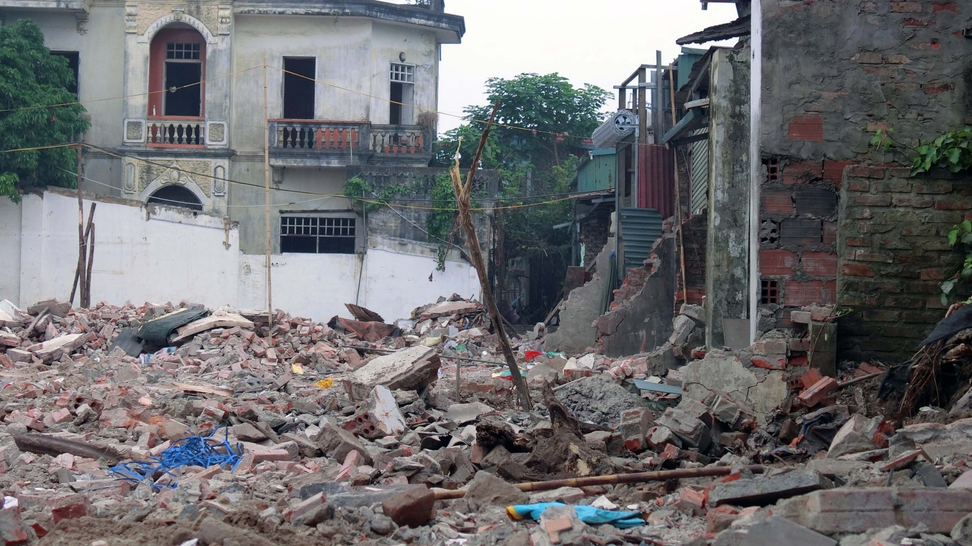 Đến nay, dự án tại khu vực này đã cơ bản hoàn thành công tác GPMB, các căn nhà nằm trong diện thu hồi đang chờ máy móc phá dỡ.