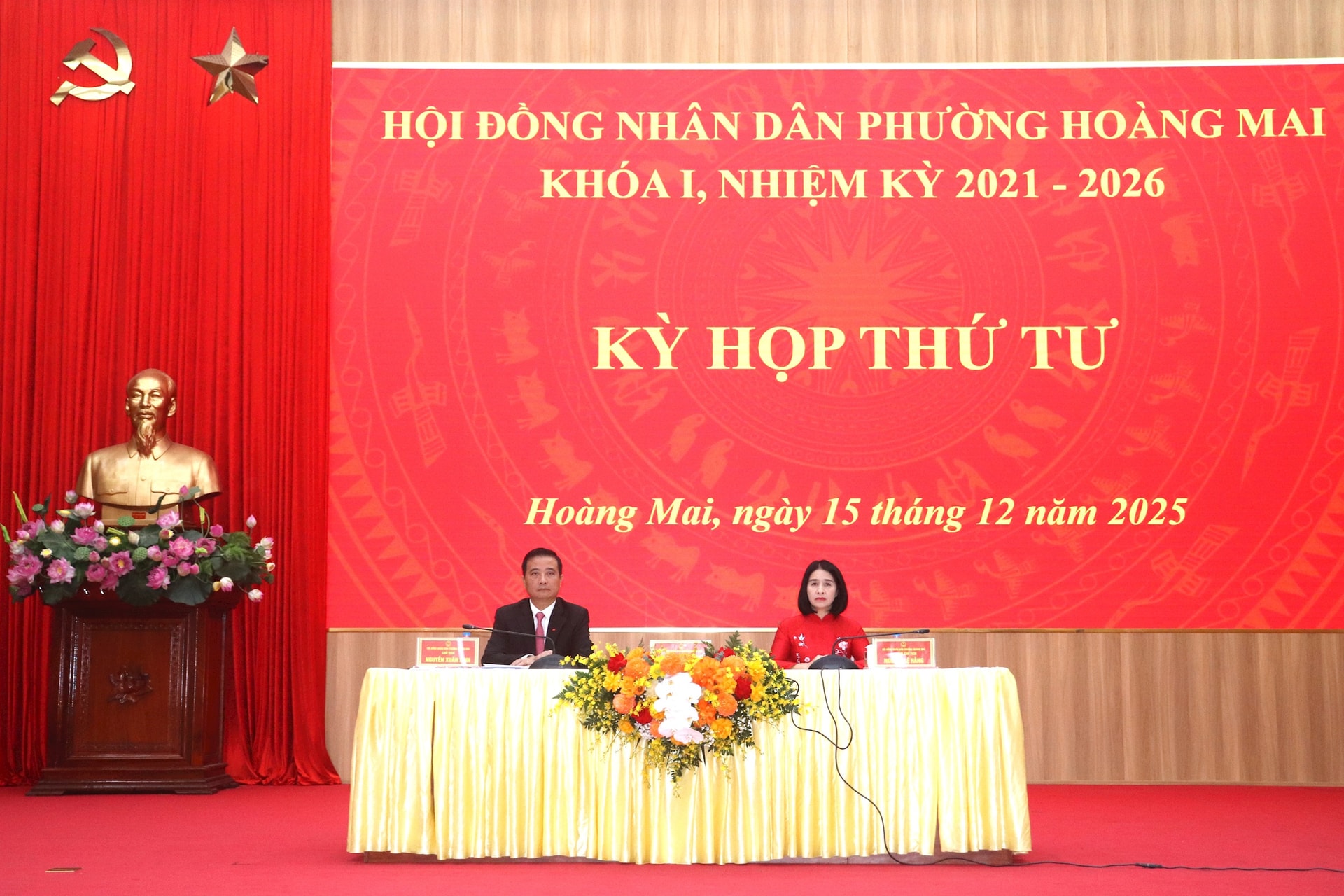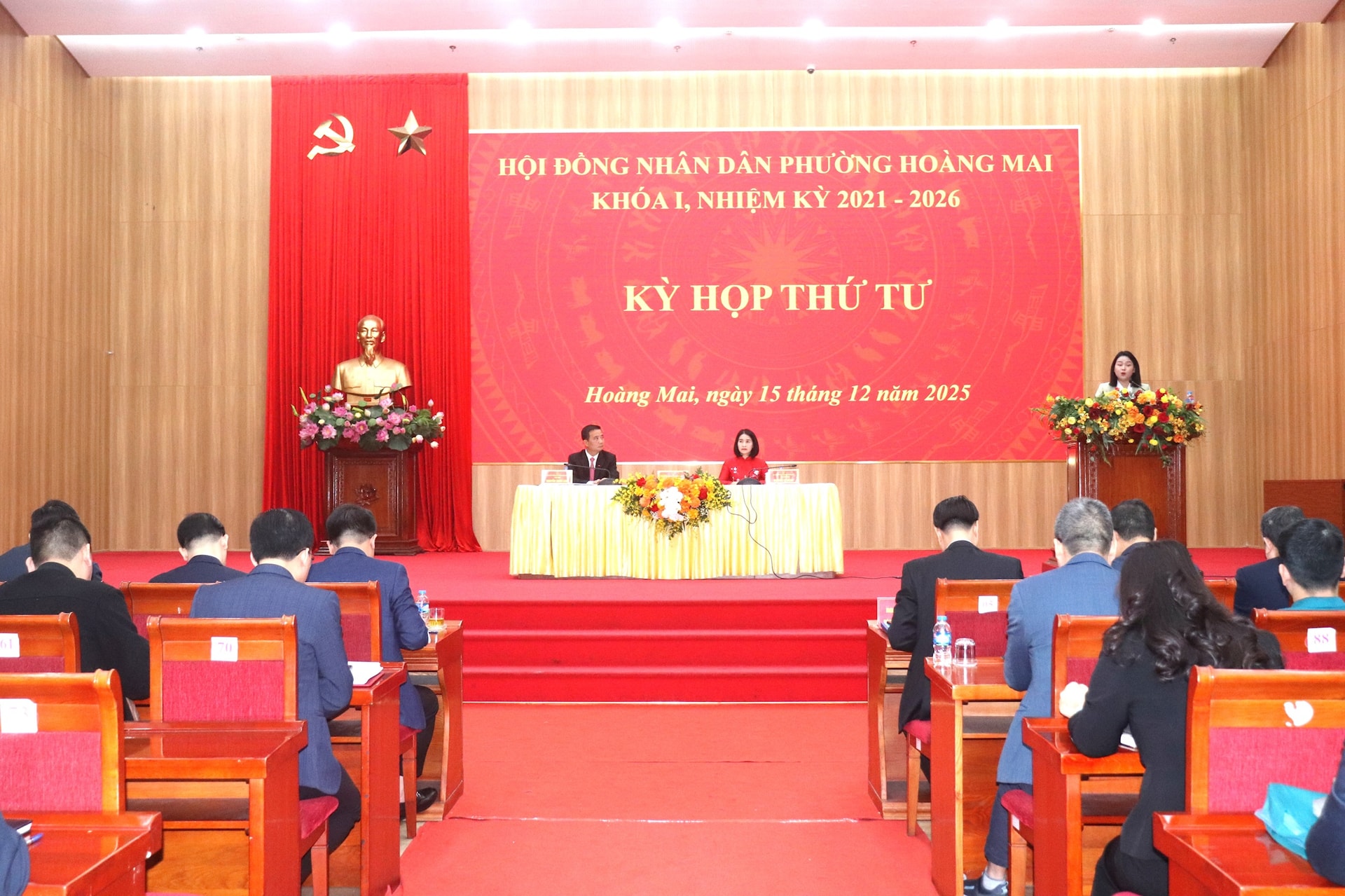 Phát biểu tại kỳ họp, Bí thư Đảng ủy, Chủ tịch HĐND phường Hoàng Mai Nguyễn Xuân Linh nhấn mạnh, để các nghị quyết của kỳ họp thứ tư sớm đi vào cuộc sống, tạo chuyển biến rõ nét trong năm 2026, UBND phường cần sớm cụ thể hóa các nghị quyết của HĐND thành chương trình, kế hoạch, đề án, nhiệm vụ cụ thể cho từng lĩnh vực, từng đơn vị, gắn với phân công trách nhiệm rõ người, rõ việc, rõ thời gian hoàn thành; tập trung lãnh đạo, chỉ đạo thực hiện có hiệu quả các chỉ tiêu phát triển kinh tế - xã hội, bảo đảm quốc phòng - an ninh, quản lý trật tự đô thị, trật tự xây dựng, bảo vệ môi trường; chú trọng các vấn đề cử tri quan tâm như giáo dục, y tế, an sinh xã hội, phòng cháy, chữa cháy, giải phóng mặt bằng…