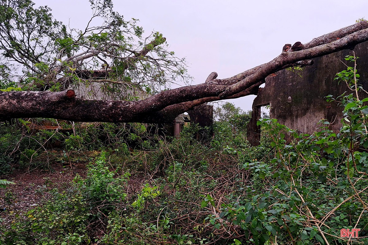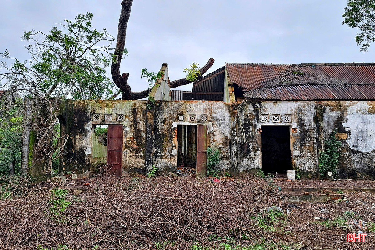 Cây cối đổ ngã, cỏ dại bủa vây, nhà kho xuống cấp trầm trọng khiến khung cảnh hoang tàn.